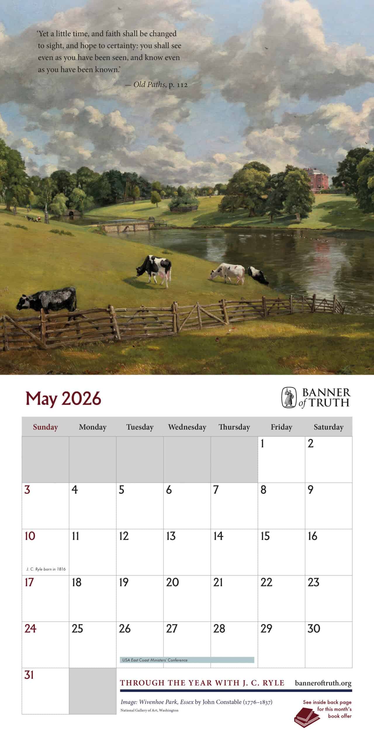 – Each month features an attractive British artwork, with a quote from J. C. Ryle