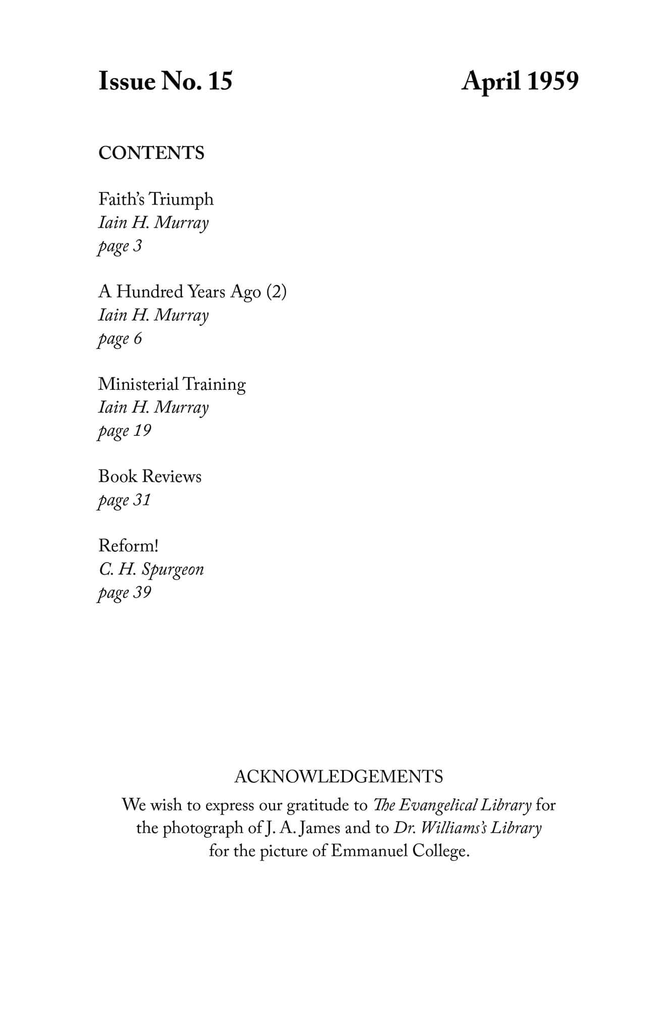 | Faith’s Triumph — Murray, Iain H | 1-2 |
