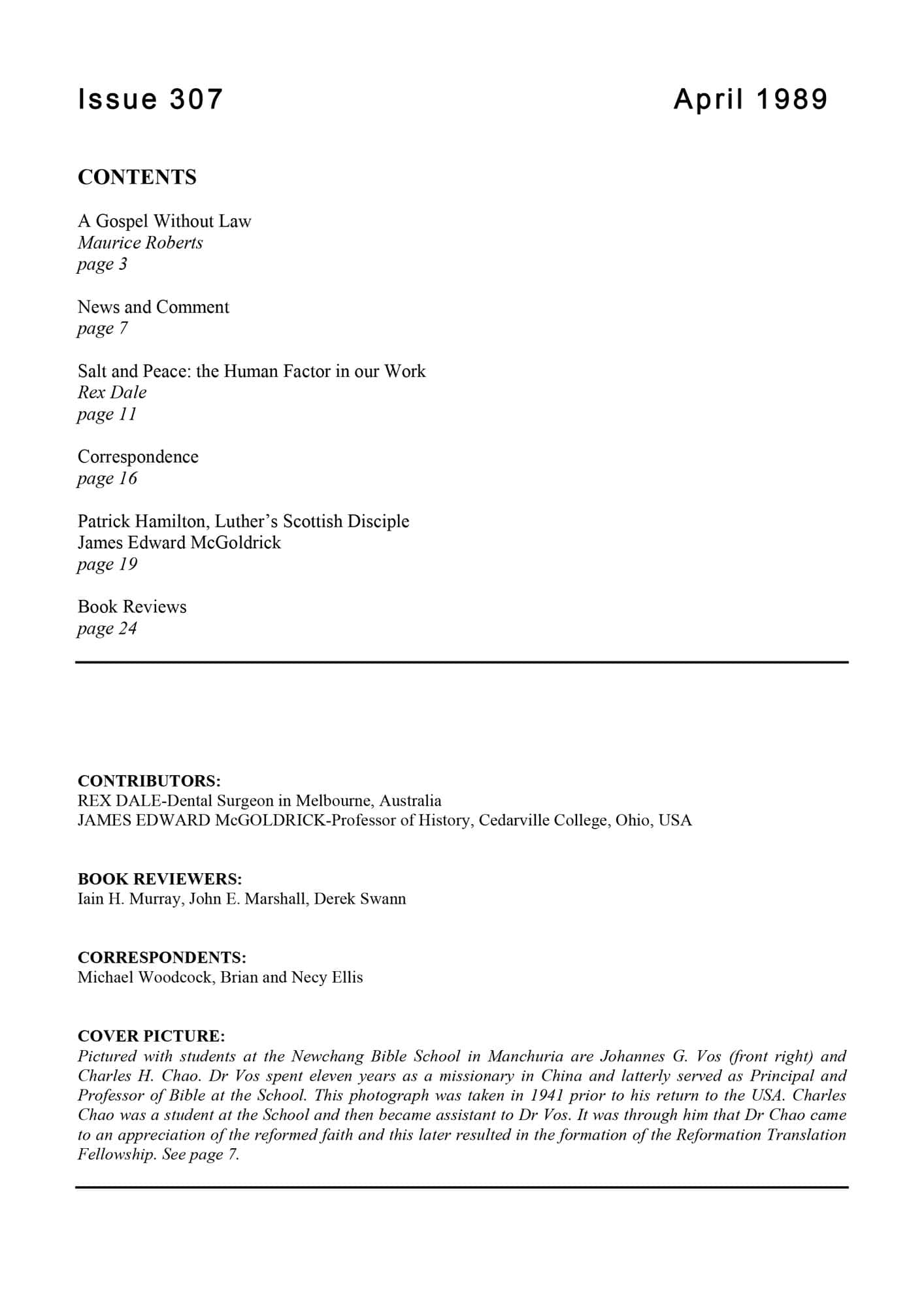 | Salt and Peace: the Human Factor in our Work — Dale, Rex | 11-18 |
