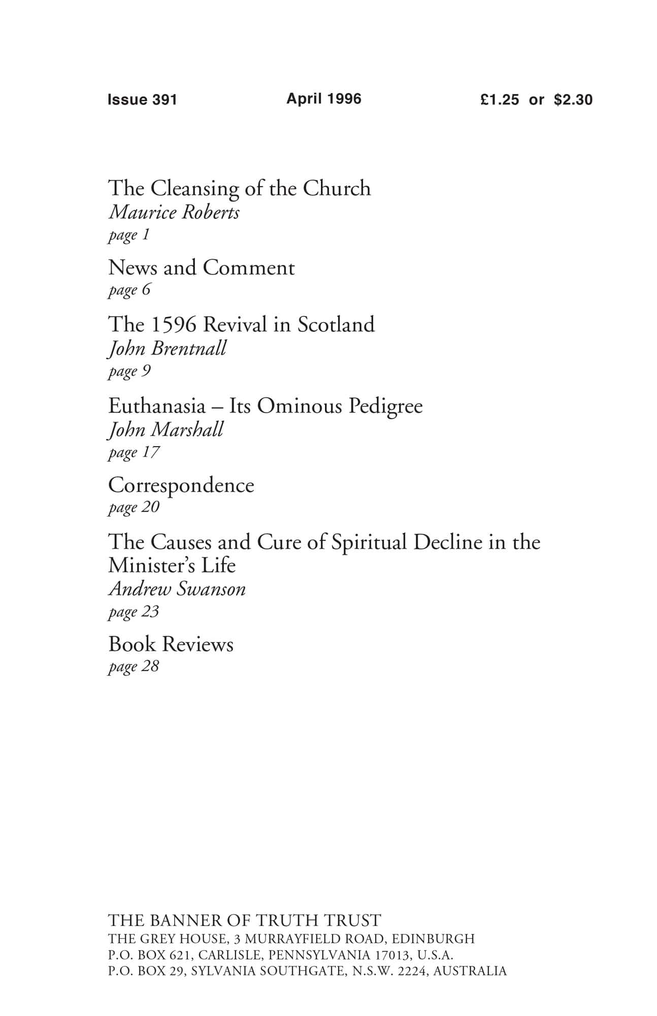 | 1596 Revival in Scotland — Brentnall, John M | 9-16 |