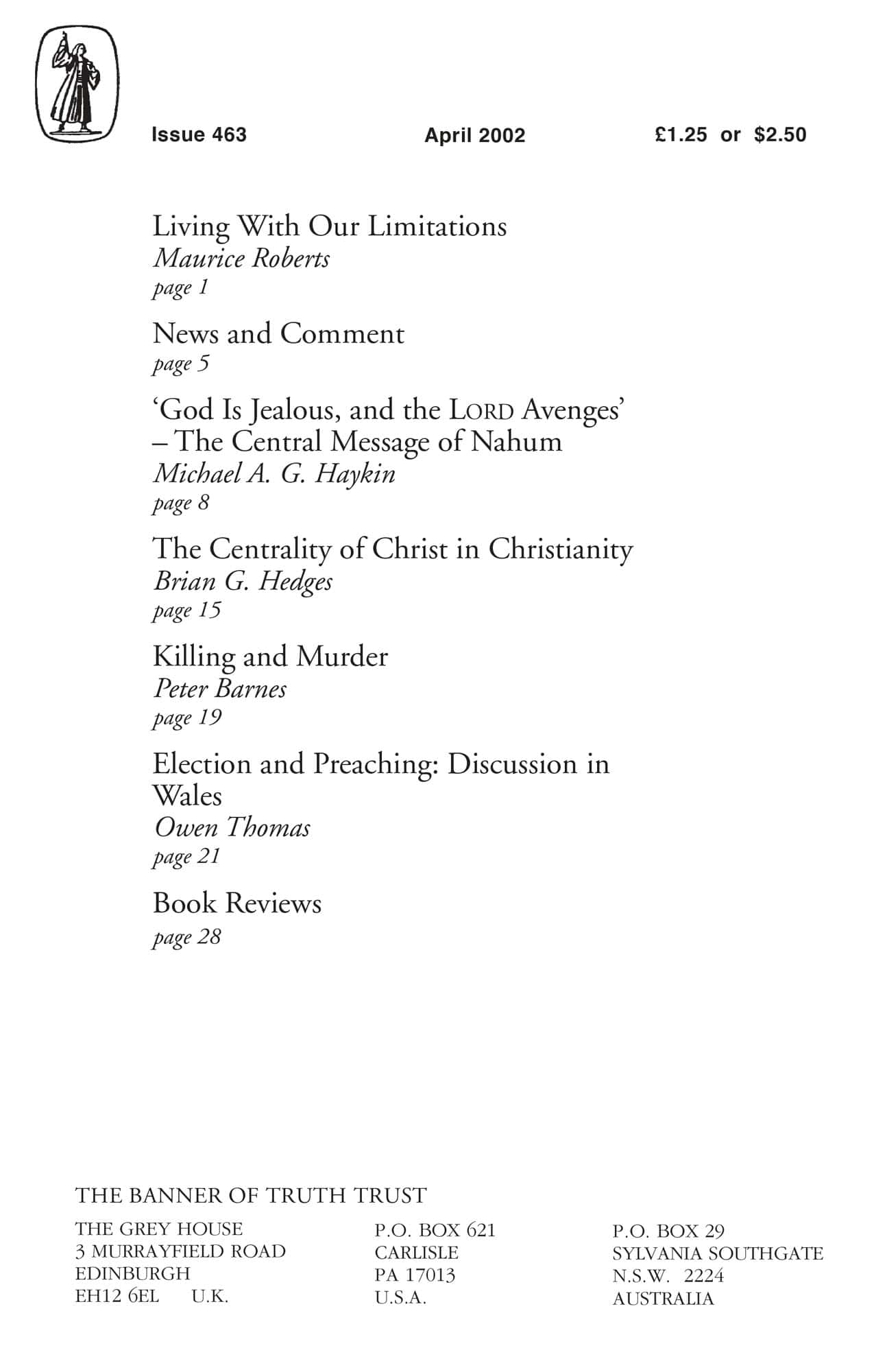 | God is Jealous and the Lord Avenges: the Central Message of Nahum — Haykin, Michael A G | 8-14 |