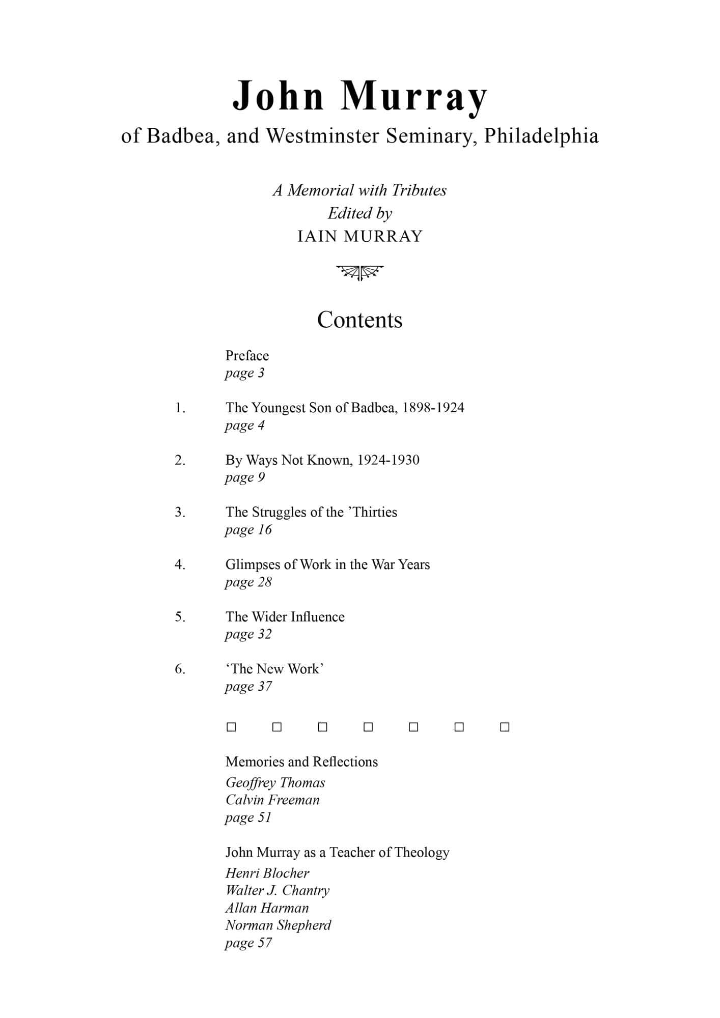 | John Murray: A Memorial with Tributes — Murray, Iain H | 1-95 |