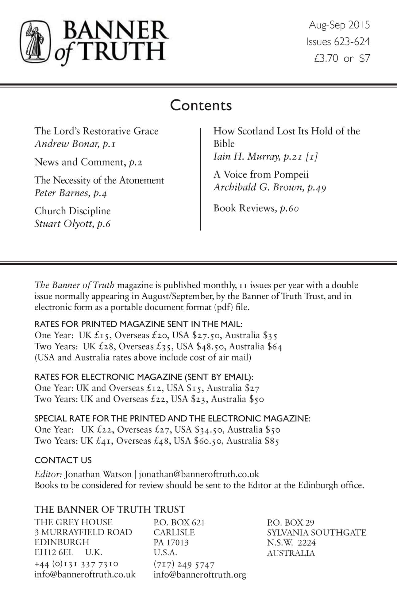 Subscribe to the Banner of Truth Magazine for 11 edifying issues each year (including summer double issue).