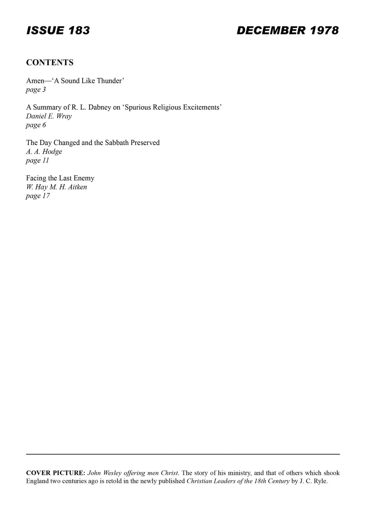 | Summary of Robert L. Dabney on Spurious Religious Excitements — Wray, Daniel E | 5-13 |