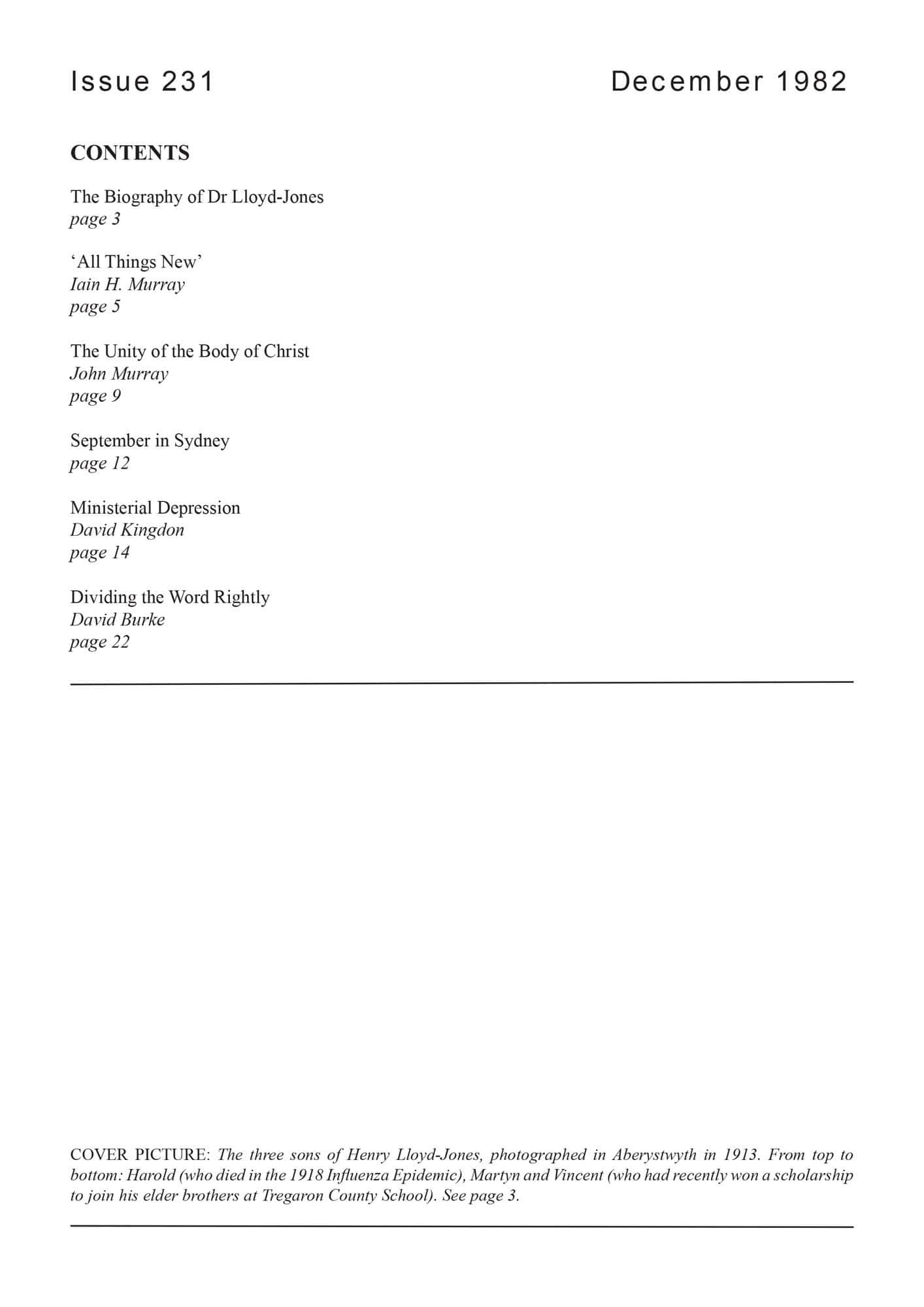 | Letter from Sydney (1) — Murray, Iain H | 15-17 |