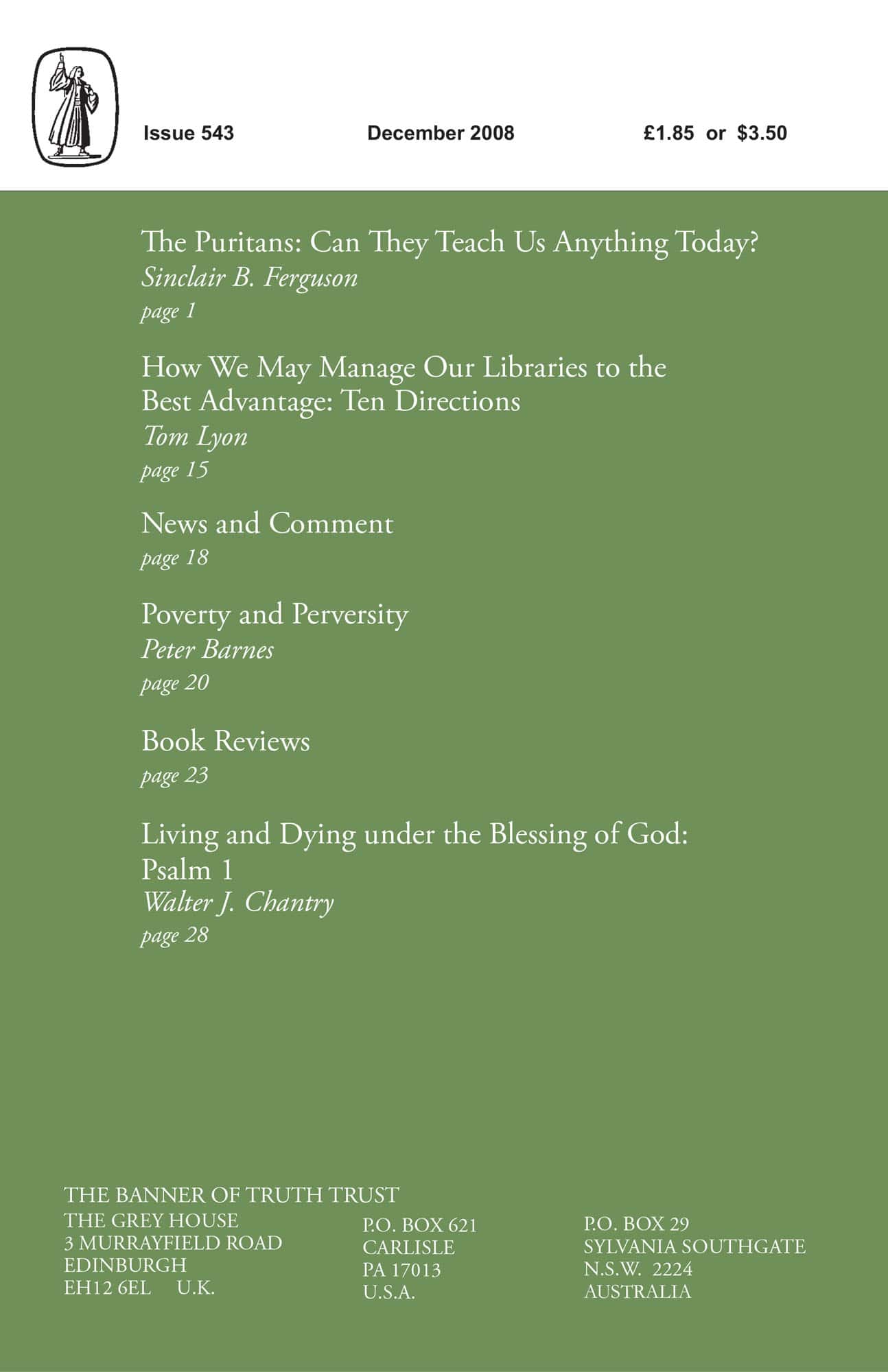 | Puritans: Can they teach us anything today? — Ferguson, Sinclair B | 1-14 |