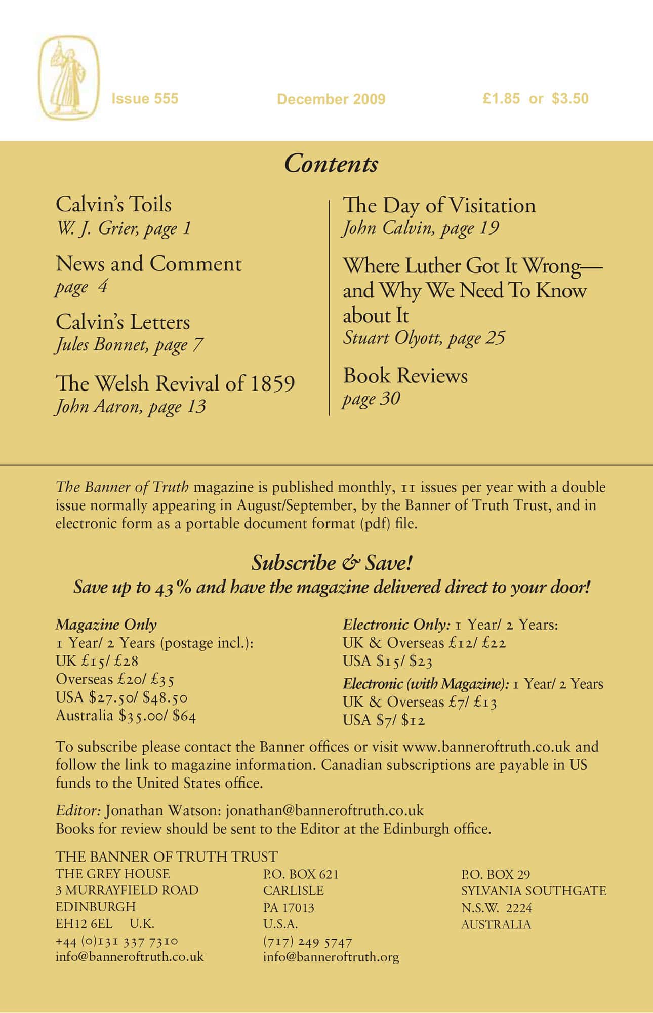 Subscribe to the Banner of Truth Magazine for 11 edifying issues each year (including summer double issue).