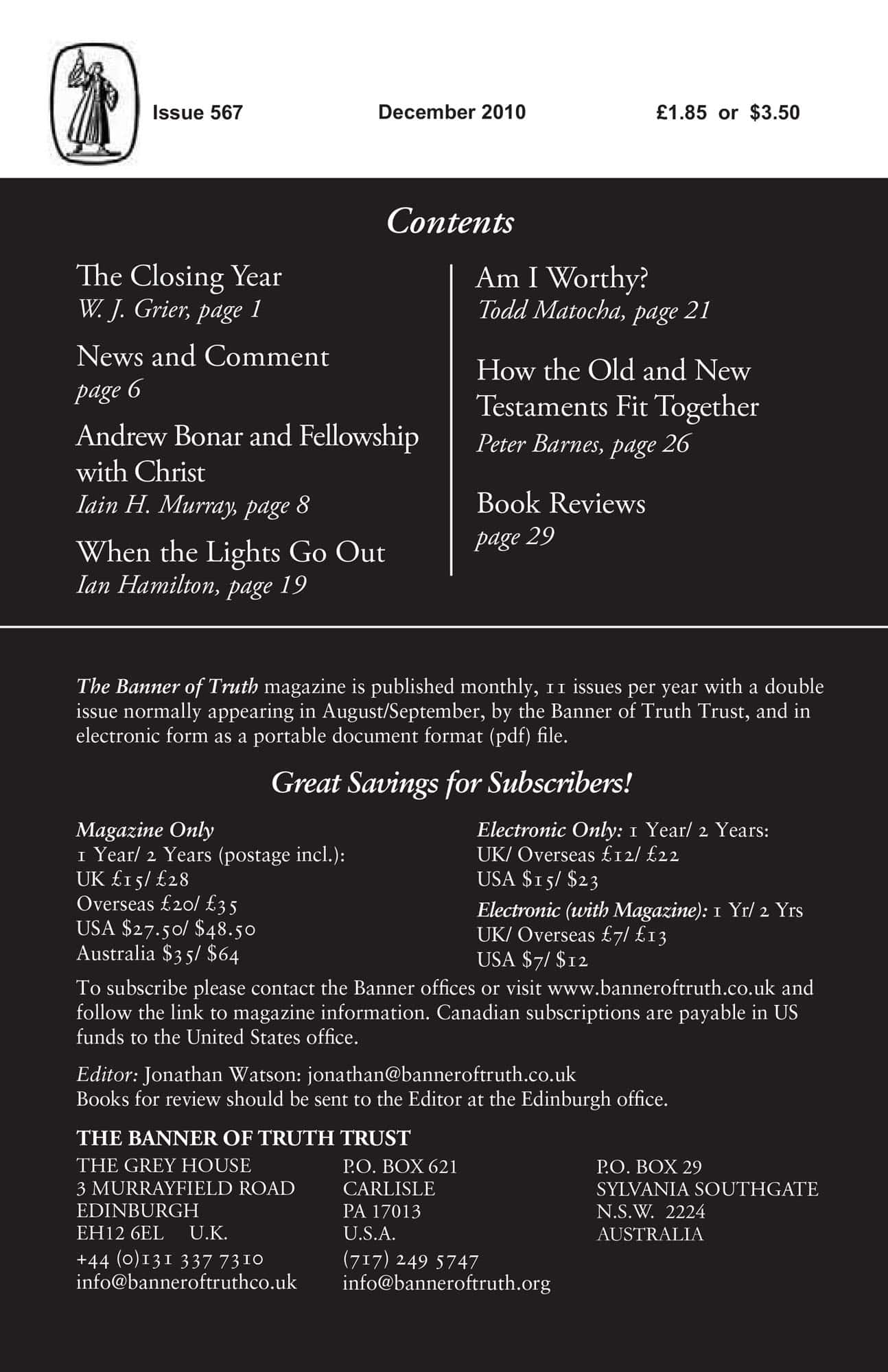 Subscribe to the Banner of Truth Magazine for 11 edifying issues each year (including summer double issue).