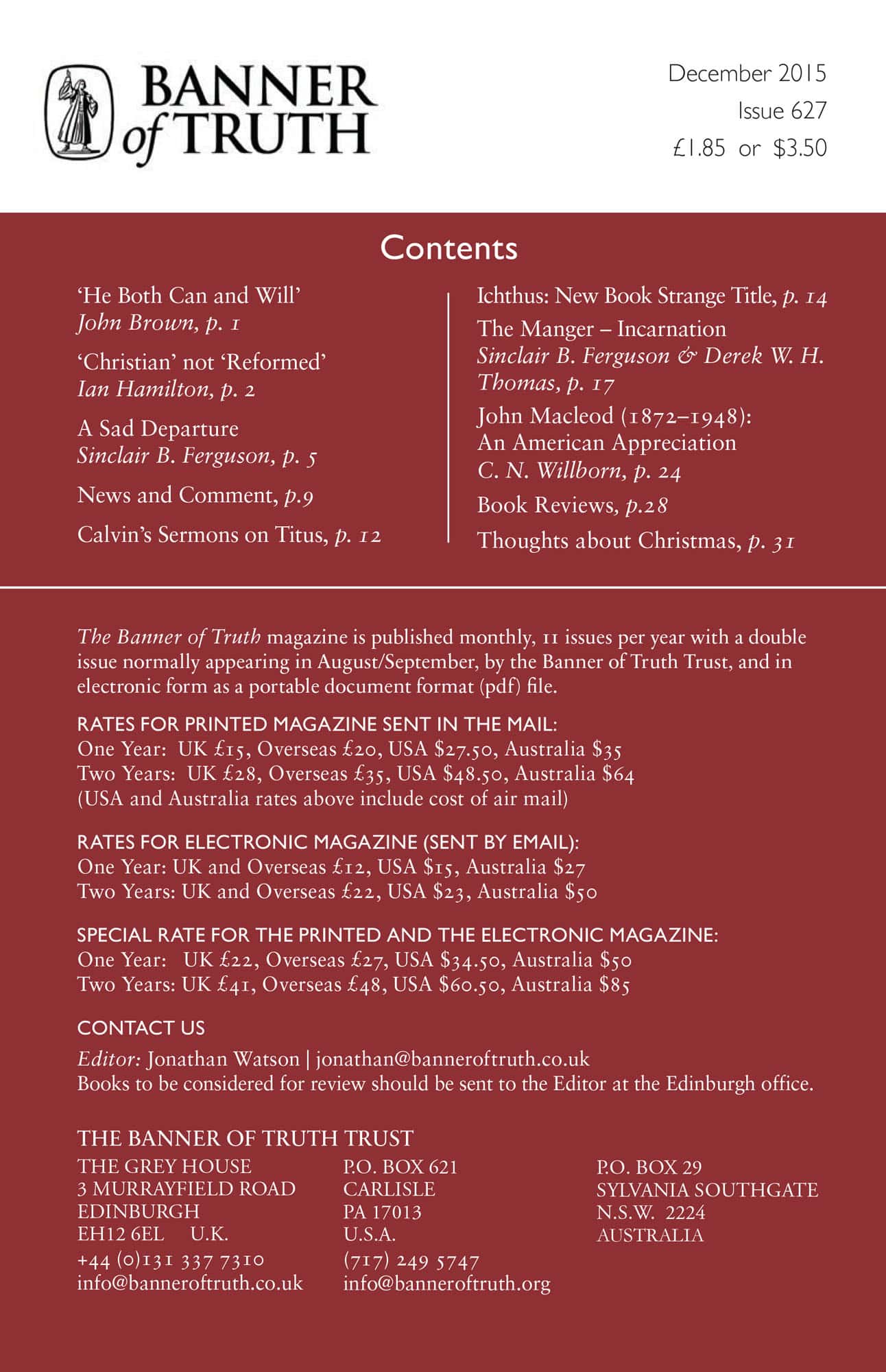 Subscribe to the Banner of Truth Magazine for 11 edifying issues each year (including summer double issue).