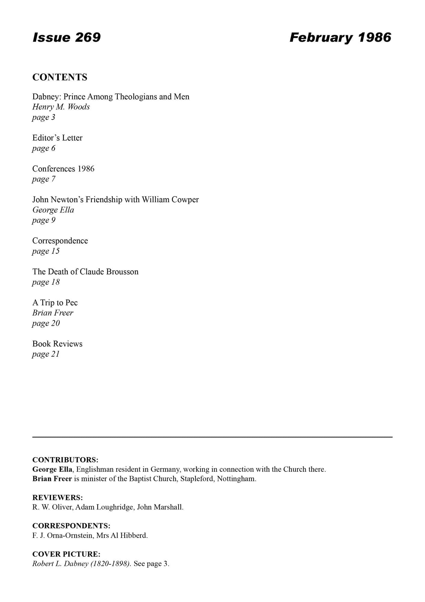 | Editor’s Letter — Murray, Iain H | 6-7 |