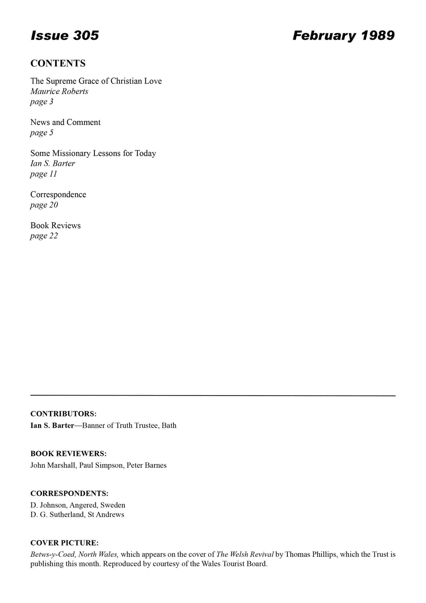 | Some Missionary Lessons for Today — Barter, Ian S | 12-26 |