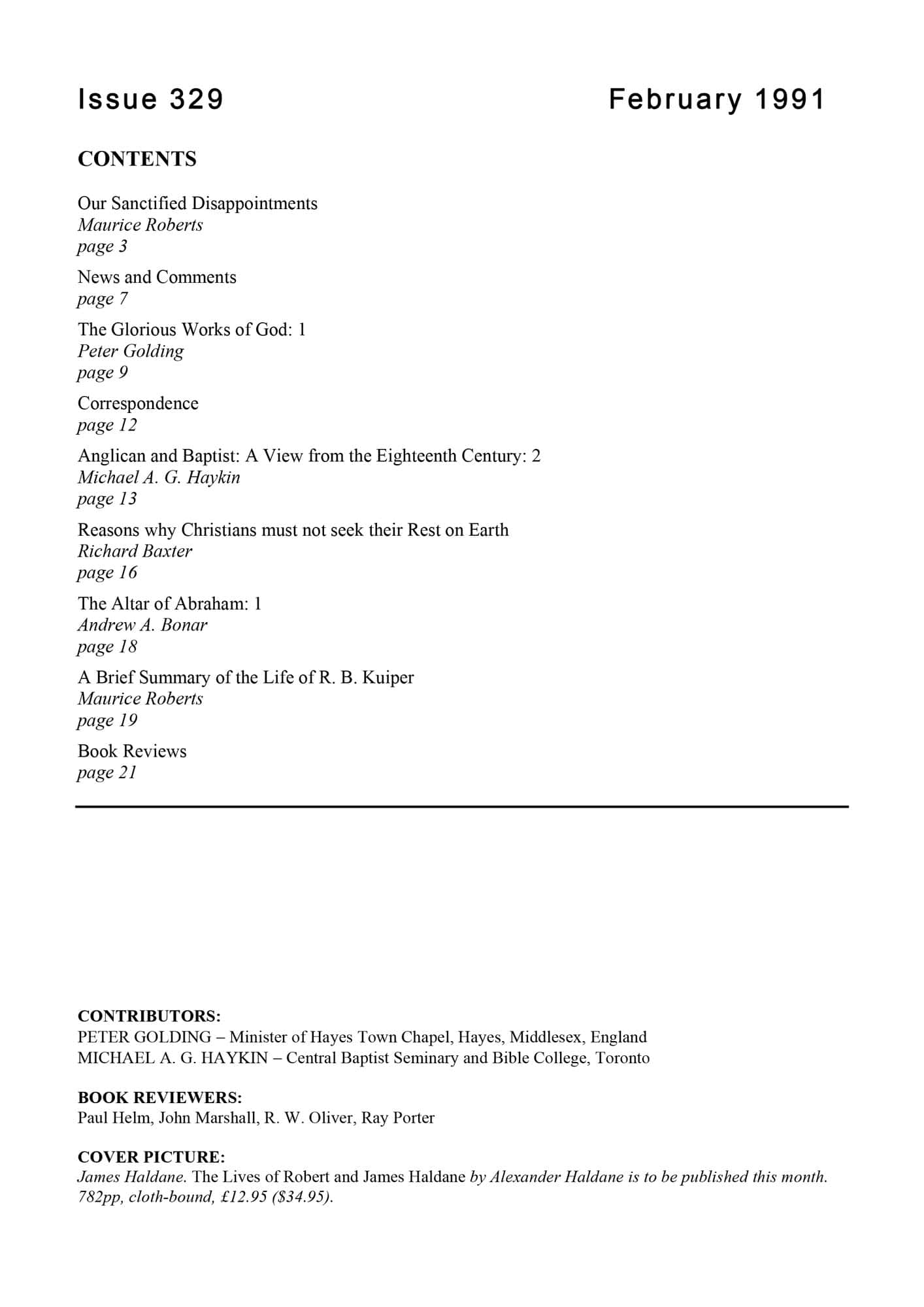 | Anglican and Baptist: A View from the Eighteenth Century (2) — Haykin, Michael A G | 15-18 |