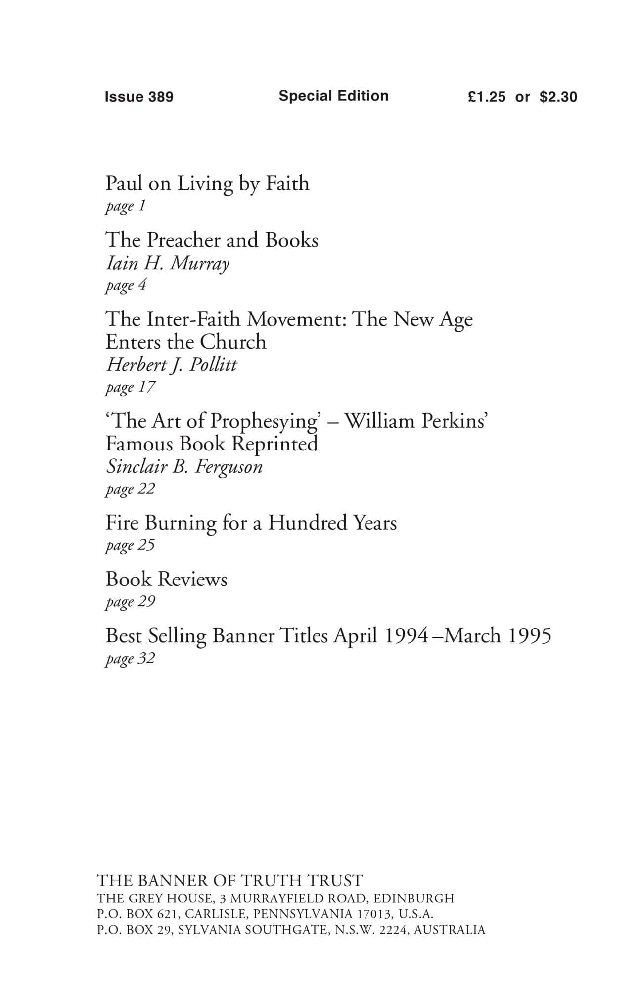 | Preacher and Books — Murray, Iain H | 4-16 |