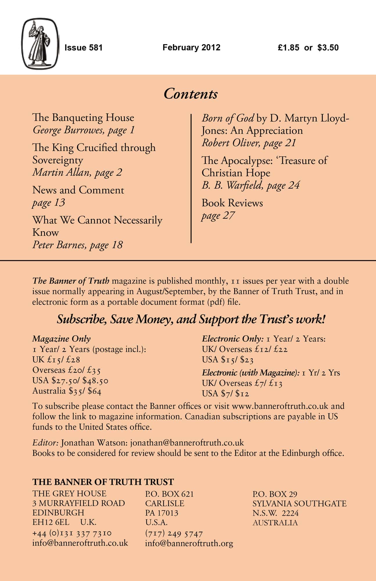 Subscribe to the Banner of Truth Magazine for 11 edifying issues each year (including summer double issue).