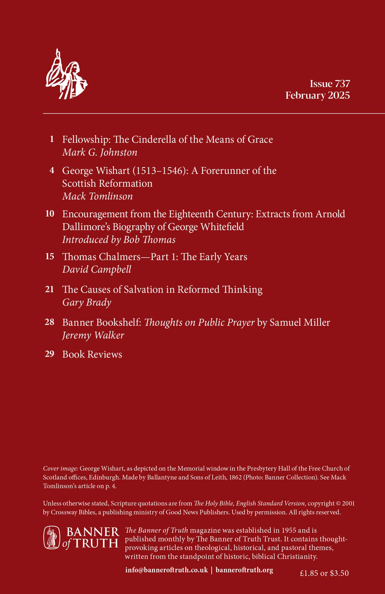 Subscribe to the Banner of Truth Magazine for 11 edifying issues each year (including summer double issue). Table of Contents O Jerusalem, Jerusalem — Thomas, Geoffrey 1-5 Changing Scene in the United States — Murray, Iain H 10-16 Zeal to Promote the Common Good – The Story of the King James Bible – 1 — […]