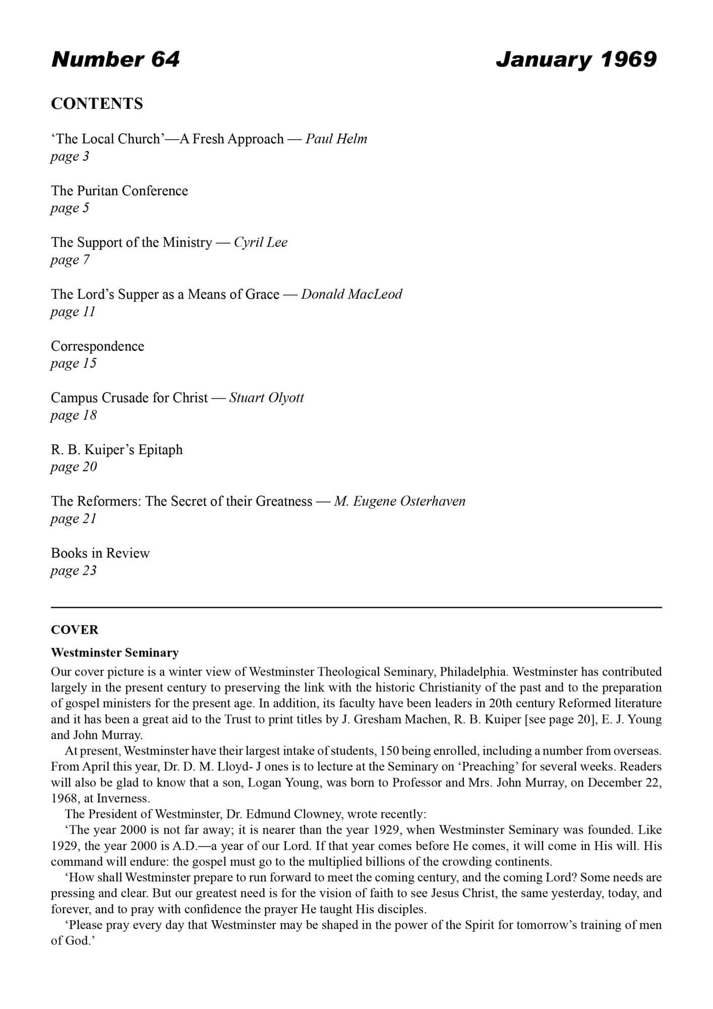 | Puritan Conference 1968 — Murray, Iain H | 5-8 |