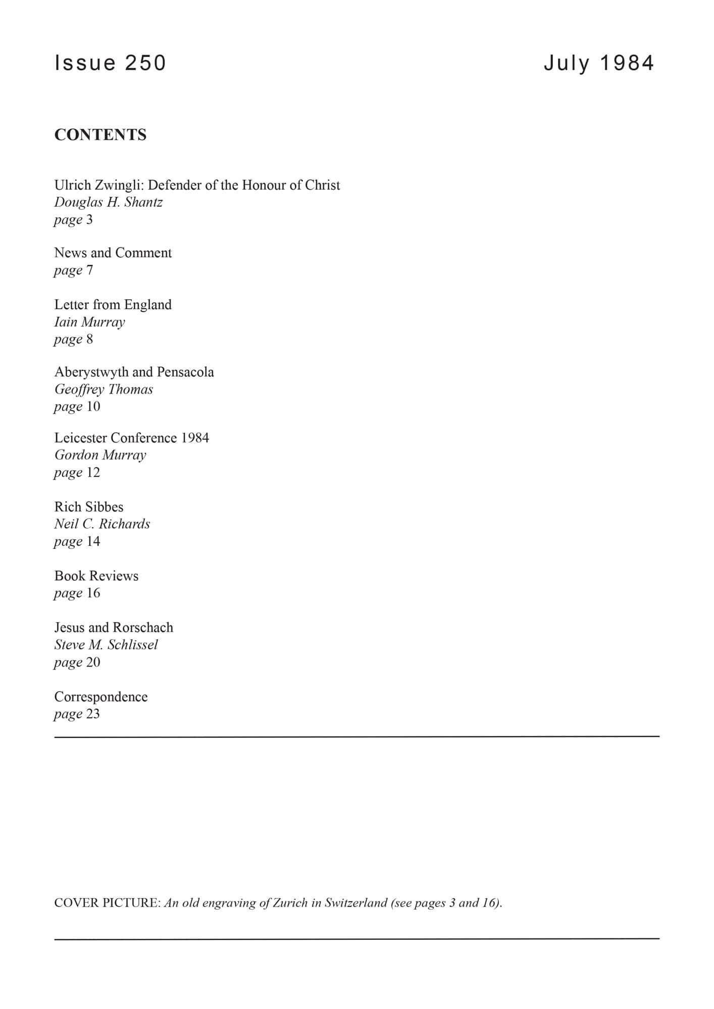 | Letter from England — Murray, Iain H | 9-12 |