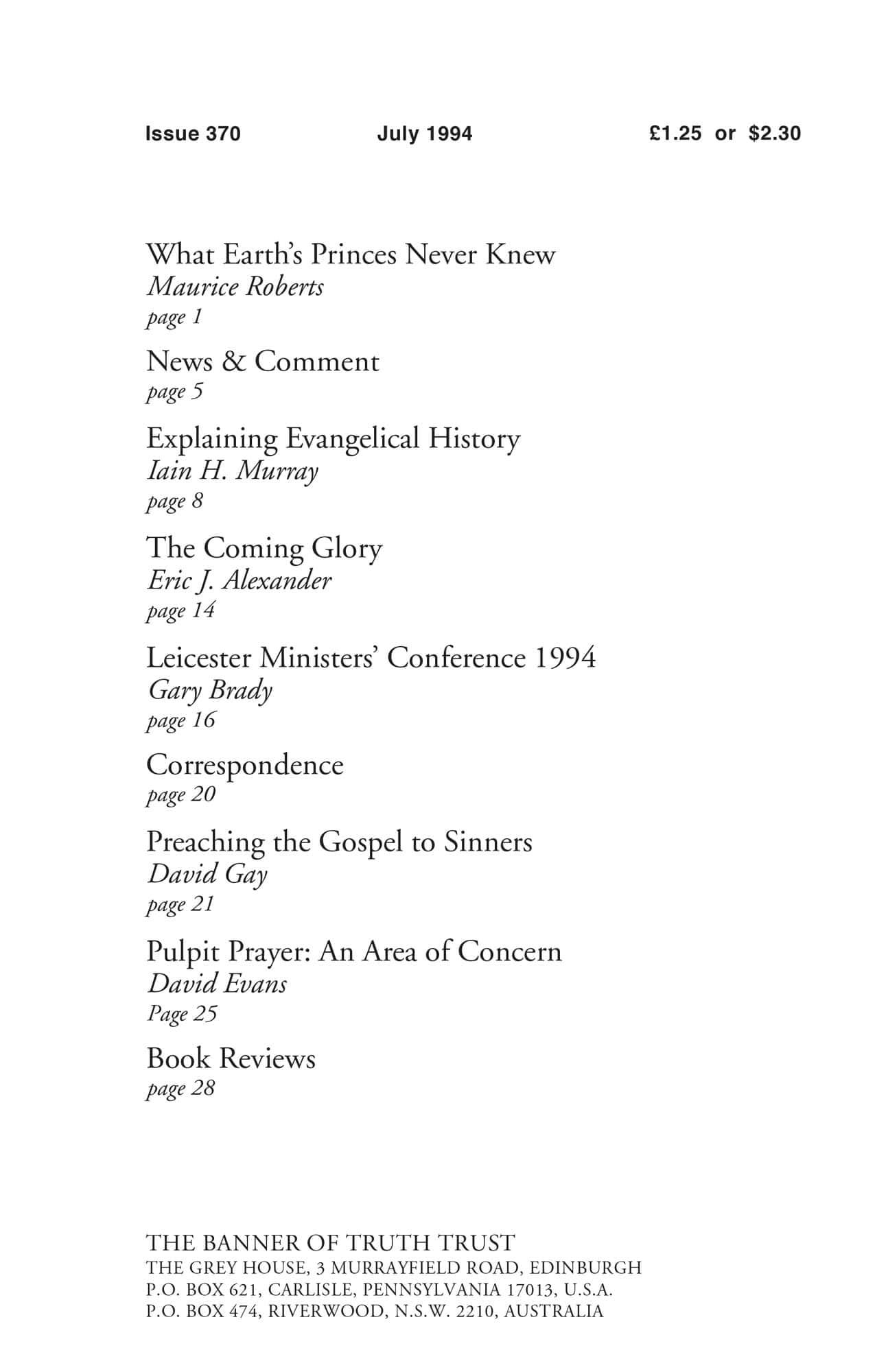 | Pulpit Prayer: An Area of Concern — Evans, David | 25-27 |