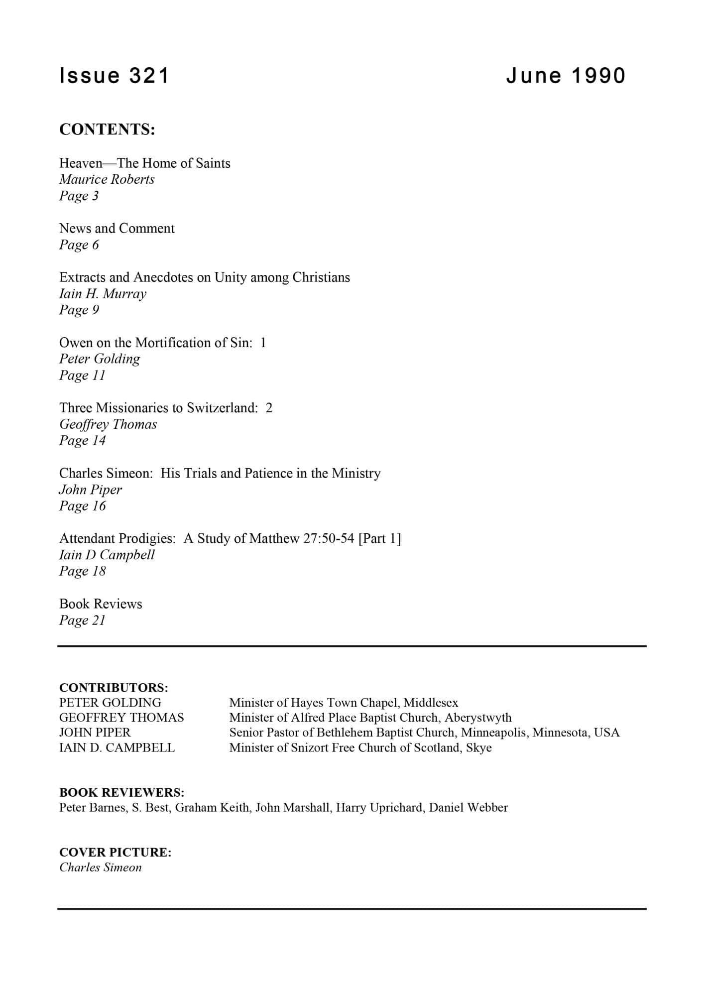 | Charles Simeon: His Trials and Patience in the Ministry — Piper, John | 21-23 |