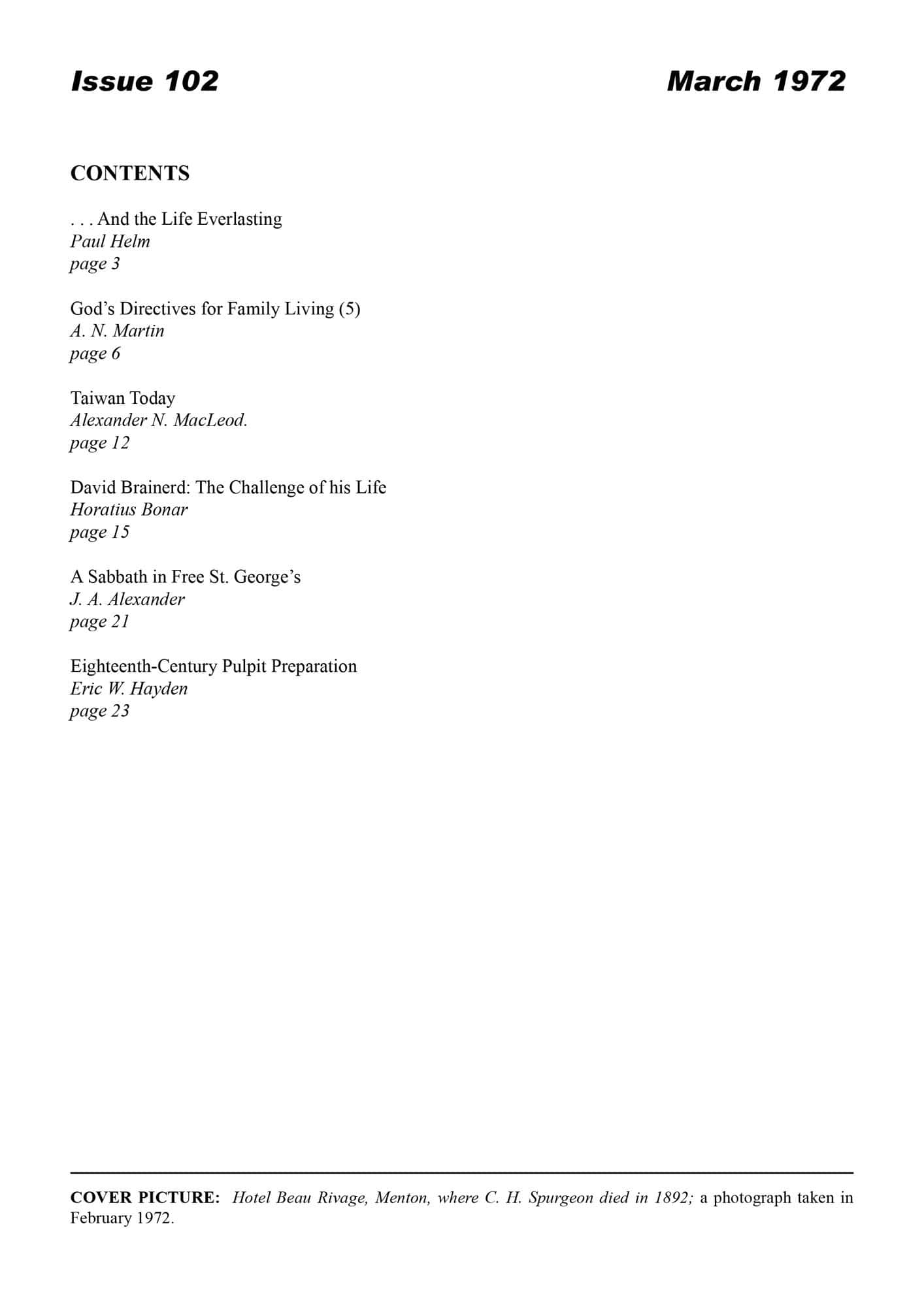 | Sabbath in Free St. George’s — Alexander, J A | 32-35 |