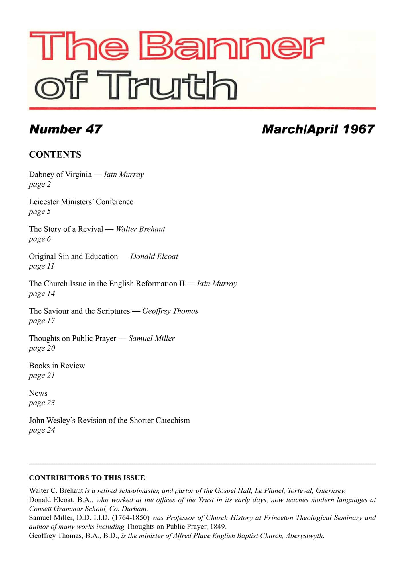 Subscribe to the Banner of Truth Magazine for 11 edifying issues each year (including summer double issue).