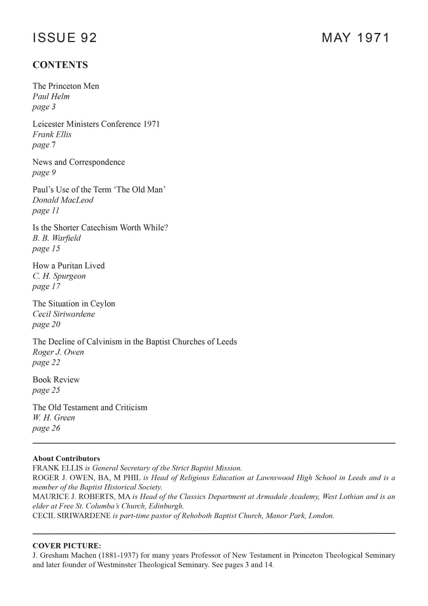 | Leicester Ministers Conference 1971 — Ellis, Frank | 7-9 |