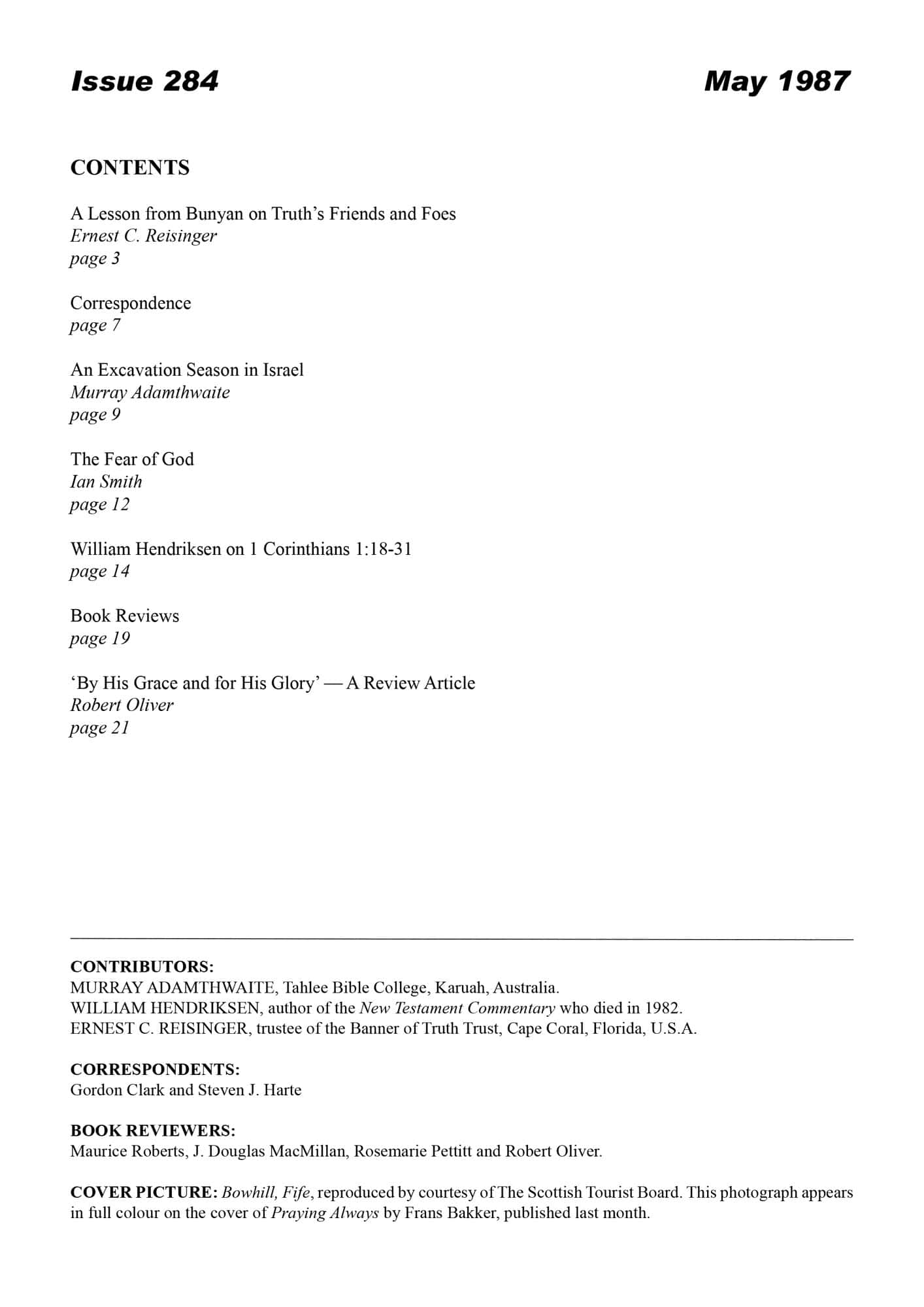 | Lesson from Bunyan on Truth’s Friends and Foes — Reisinger, Ernest C | 1-7 |
