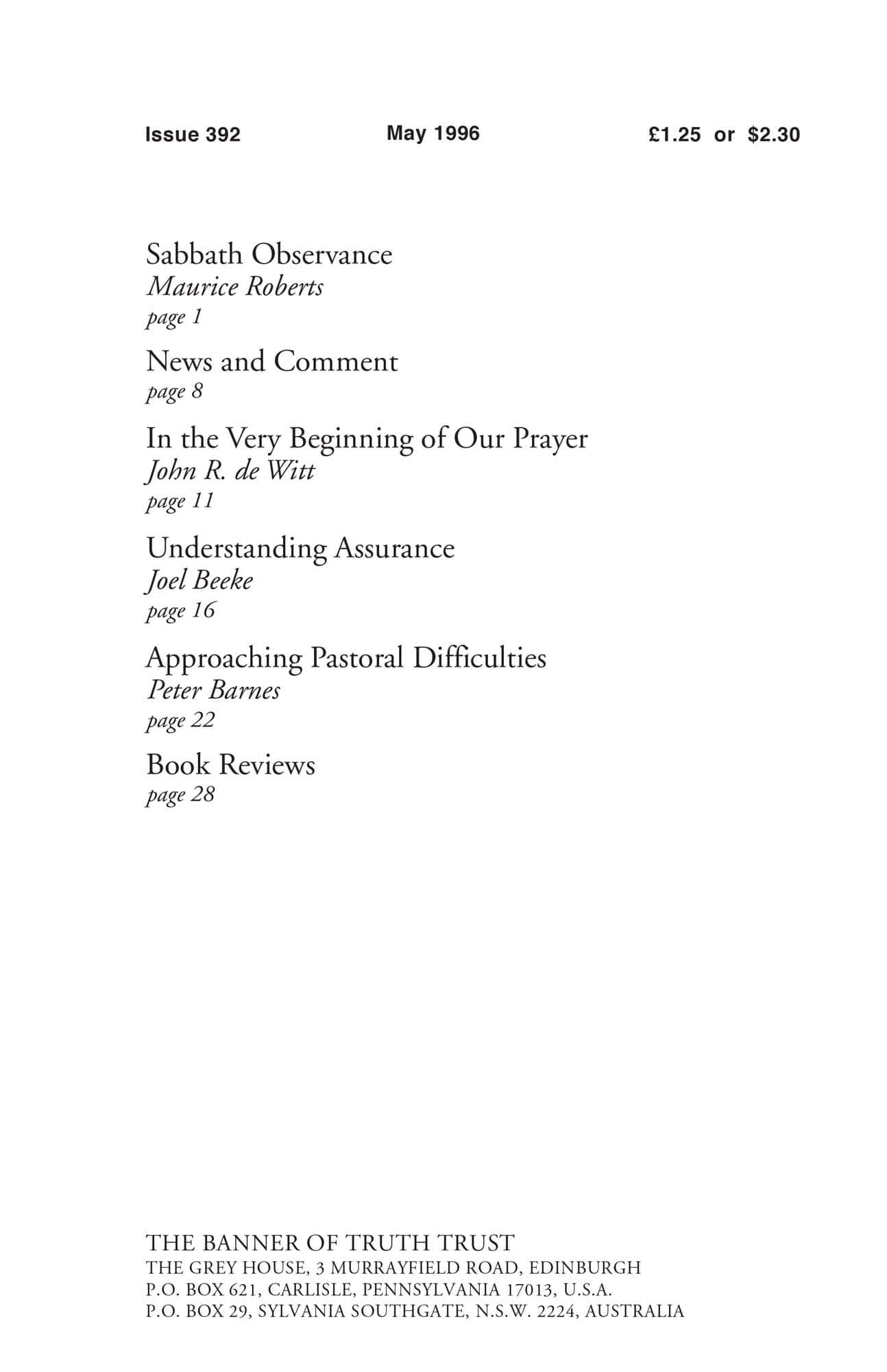 | Understanding Assurance (1) — Beeke, Joel R | 16-21 |