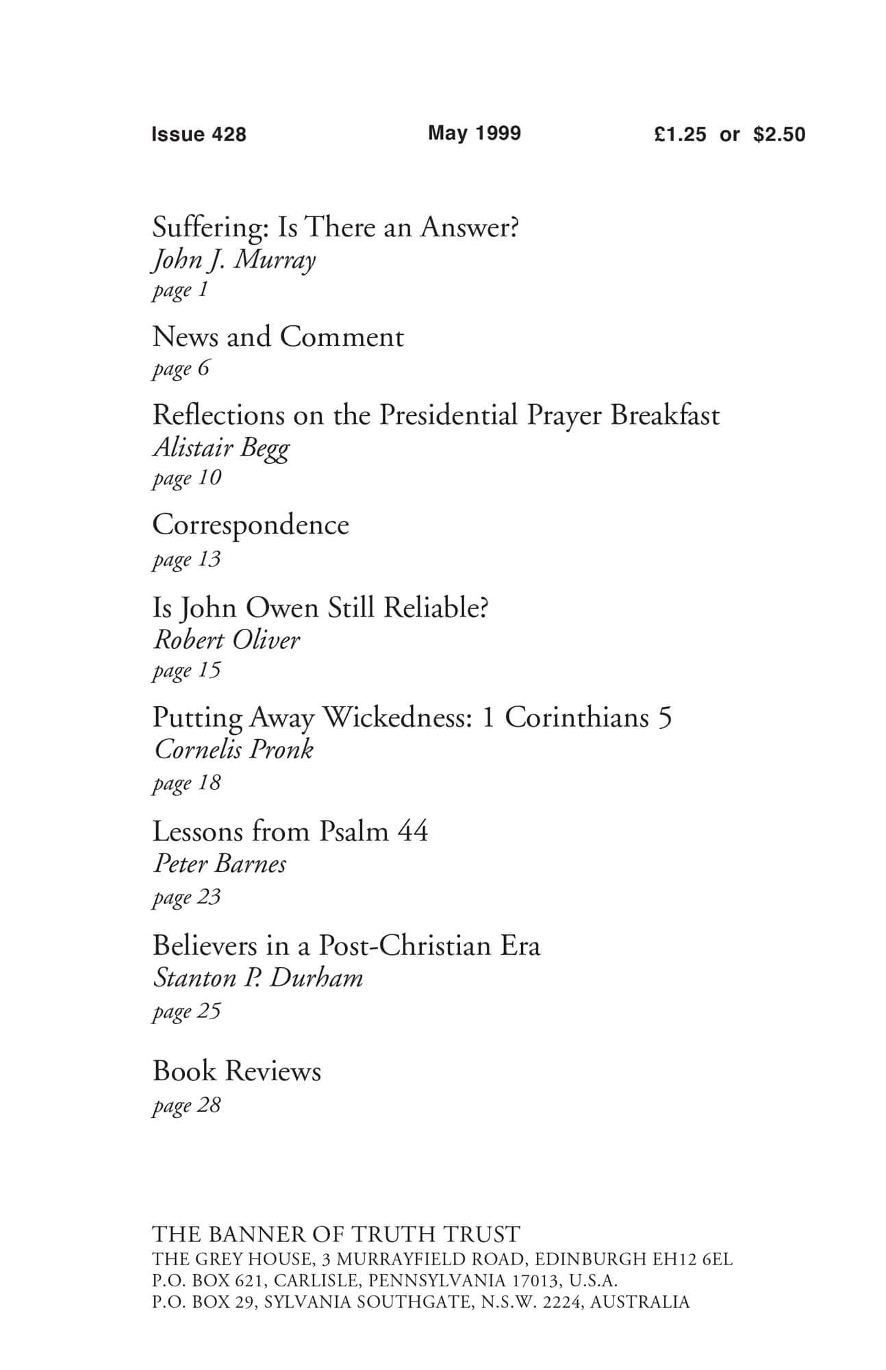 | Suffering: Is There an Answer? — Murray, John J | 1-5 |