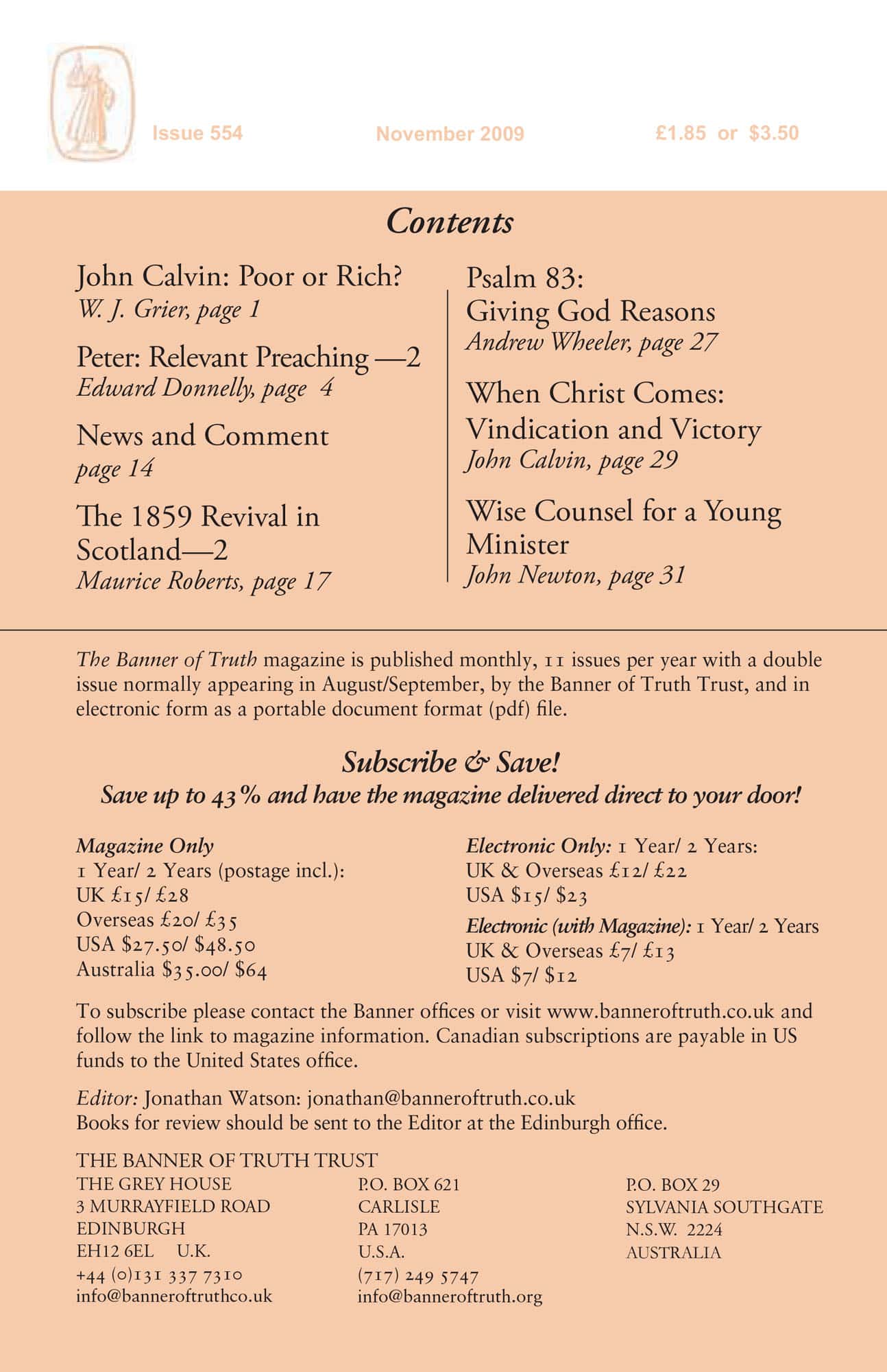 Subscribe to the Banner of Truth Magazine for 11 edifying issues each year (including summer double issue).