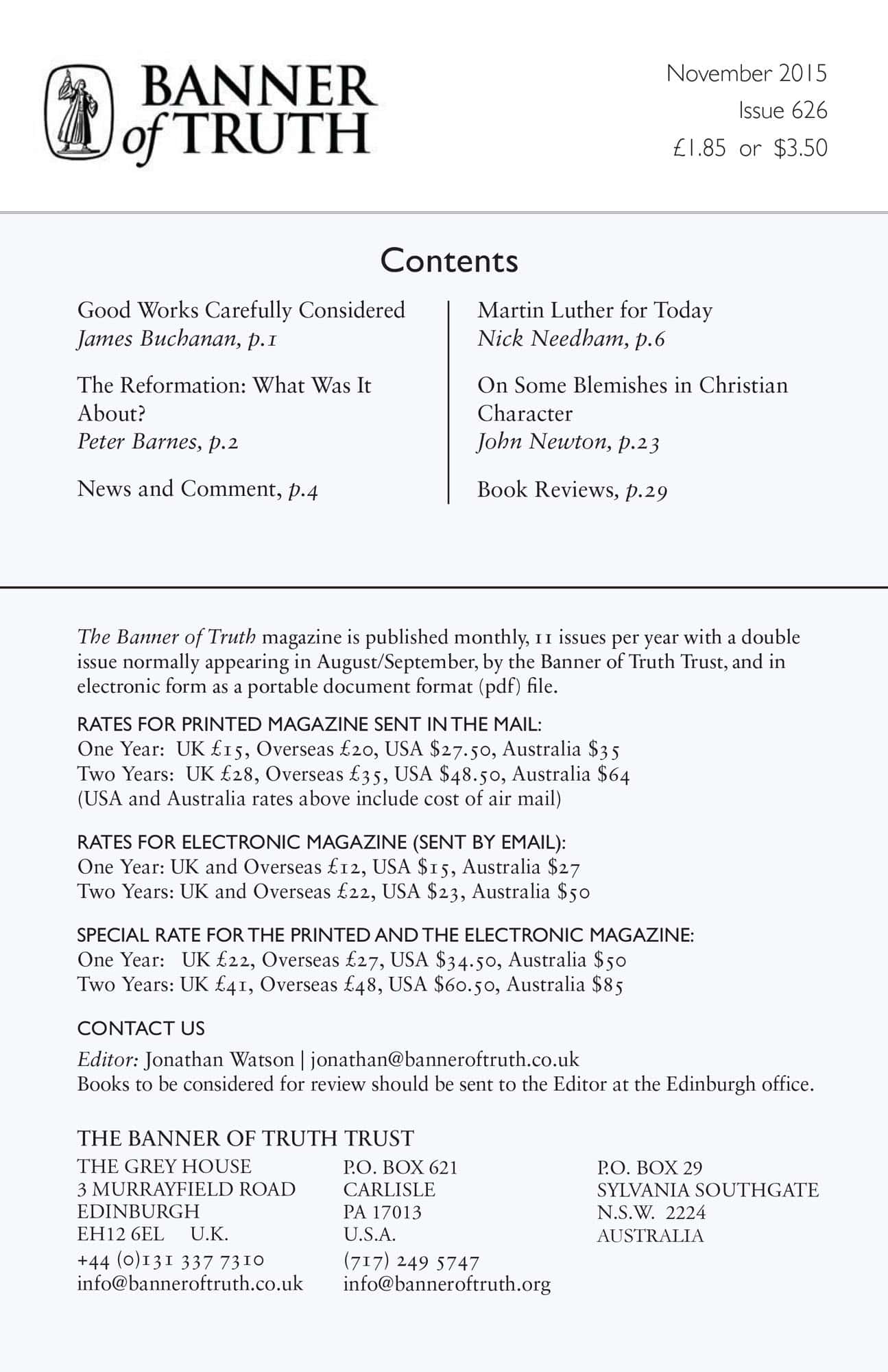Subscribe to the Banner of Truth Magazine for 11 edifying issues each year (including summer double issue).