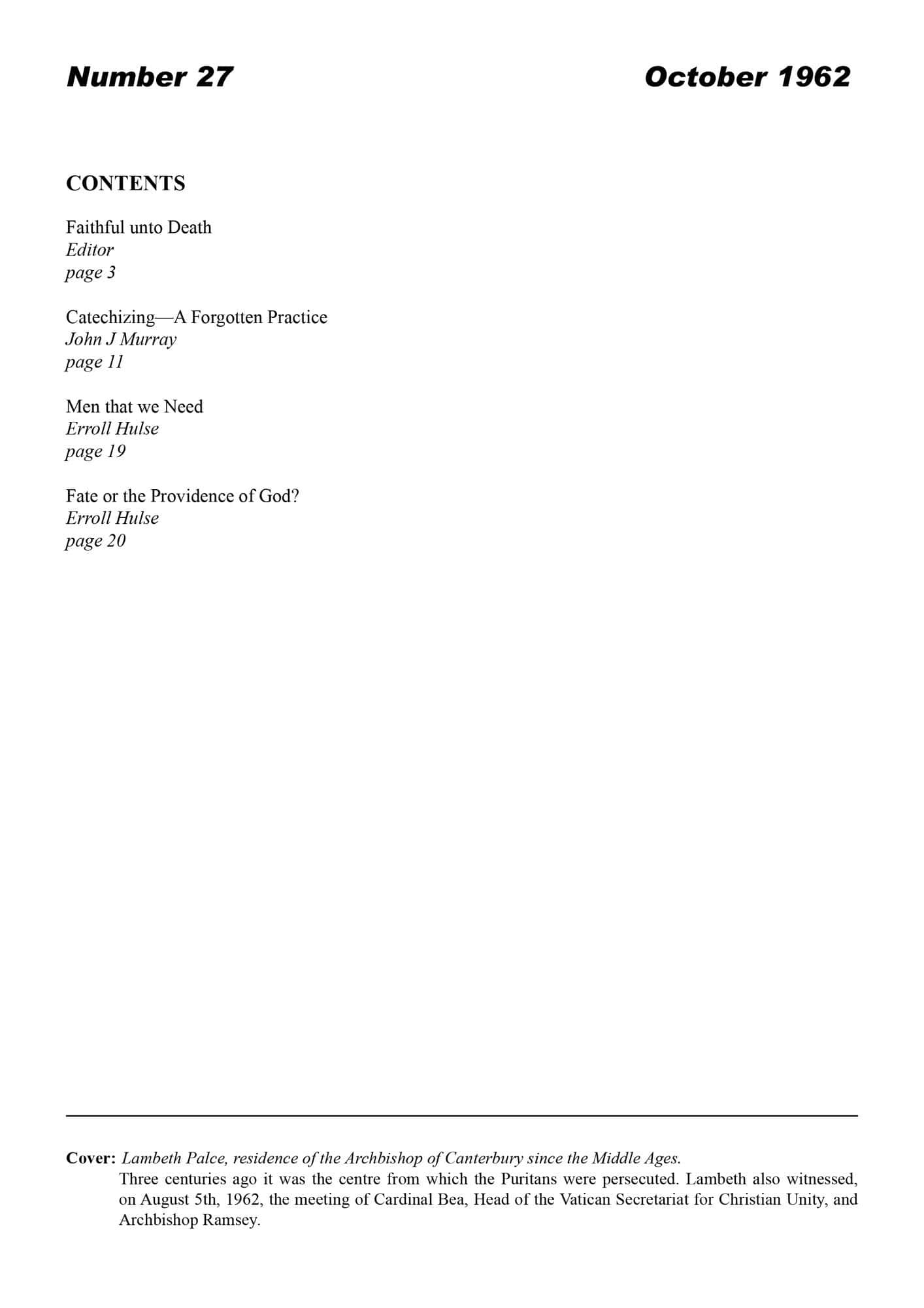 | Catechizing a Forgotten Practice — Murray, John J | 15-27 |