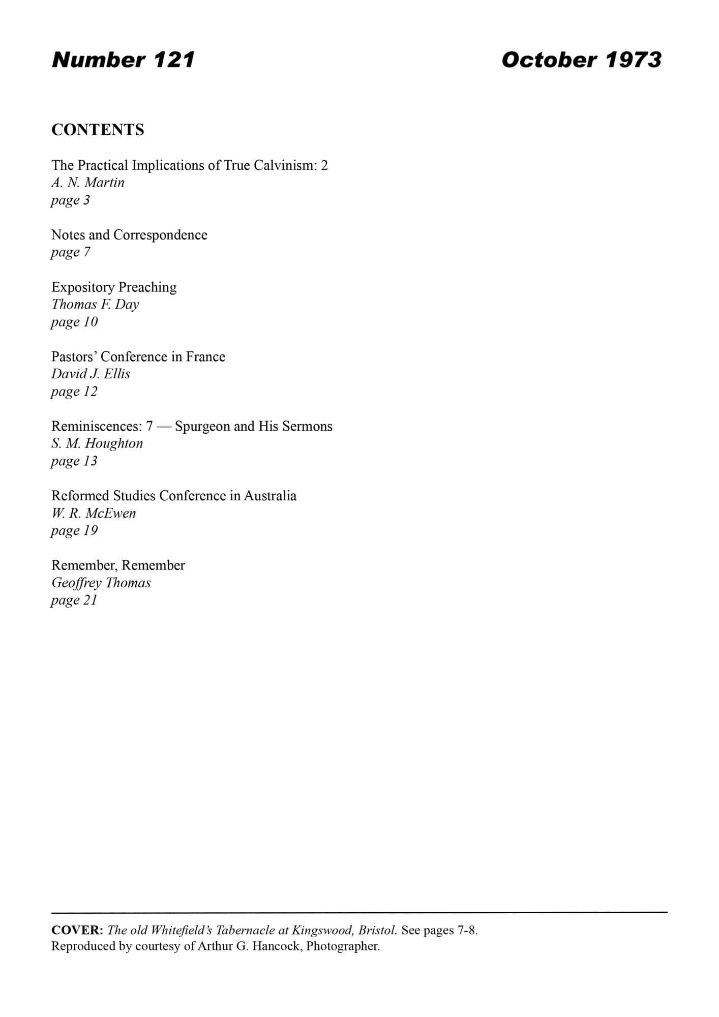 | Practical Implications of True Calvinism — Martin, Albert N | 1-7 |