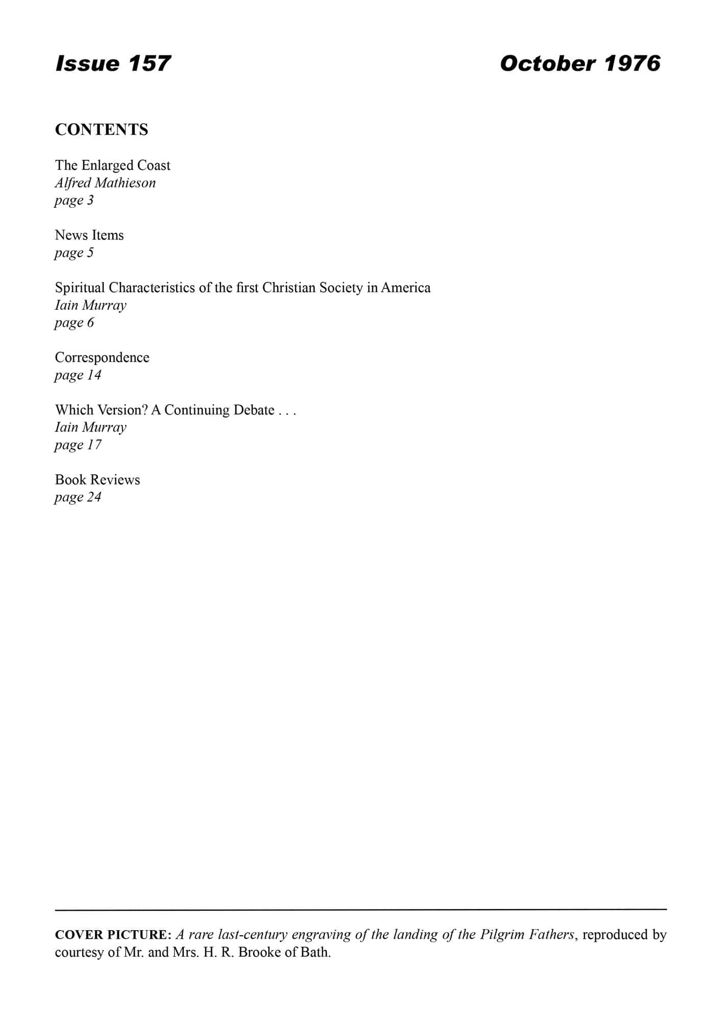 | Spiritual Characteristics of the first Christian Society in America — Murray, Iain H | 6-20 |