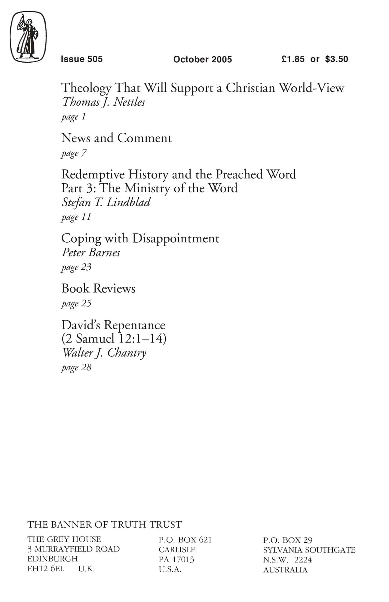 | David’s Repentance: 2 Samuel 12:1-14 — Chantry, Walter J | 29-32 |