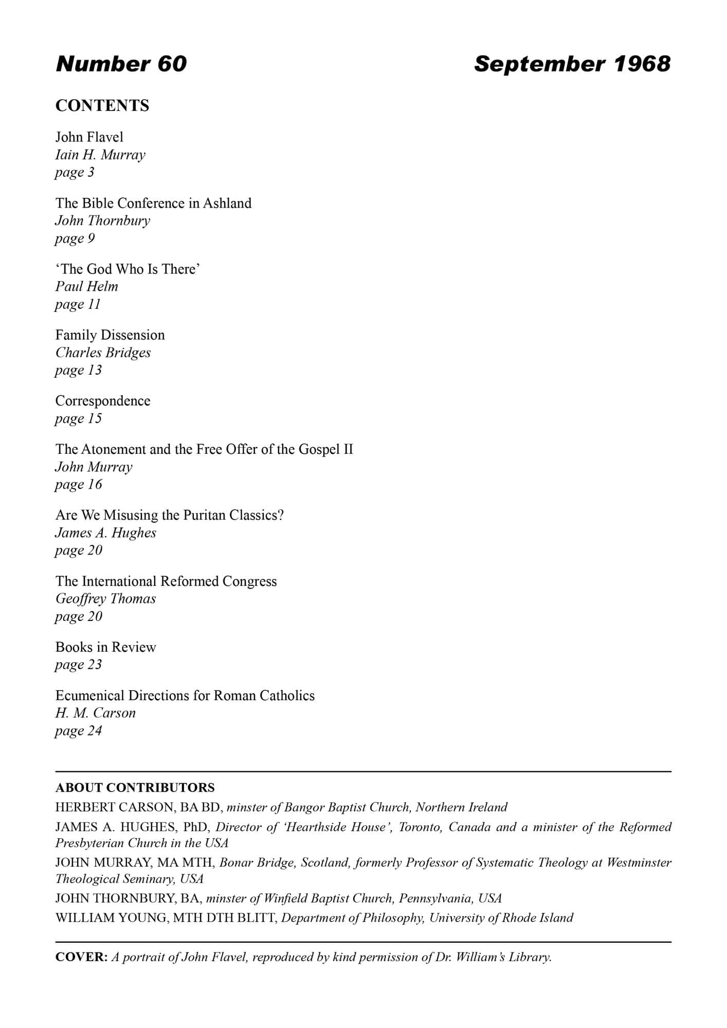 | Are we misusing the Puritan Classics? — Hughes, James A | 30 |