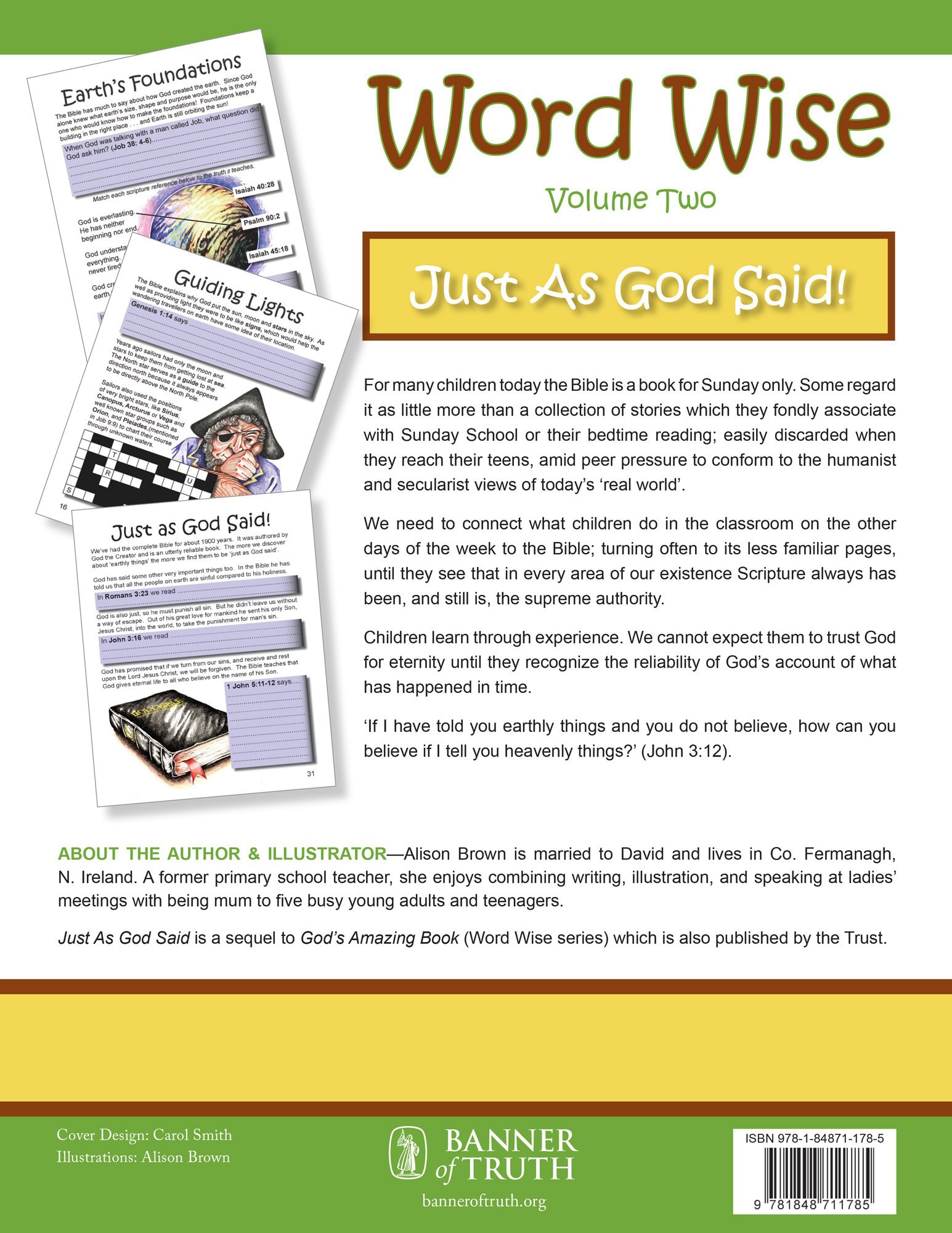Children learn through experience. We cannot expect them to trust God for eternity until they recognize the reliability of God’s account of what has happened in time. Word Wise Volume 2 is designed to help teach children through creative experience.