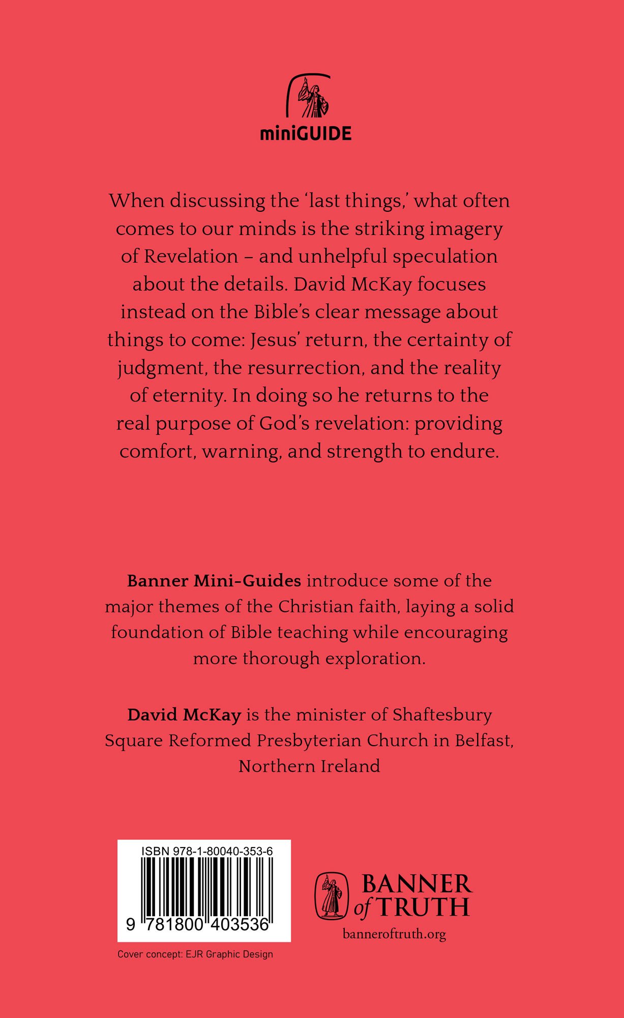 When discussing the ‘last things,’ what often comes to our minds is the book of Revelation and its striking visions – and often unhelpful speculation about their details. David McKay focuses instead on the Bible’s clear message about things to come: the Lord’s return, the certainty of judgment, the resurrection, and the reality of eternity. In doing so he returns to the real purpose of God’s revelation – providing comfort, warning, and strength to endure.