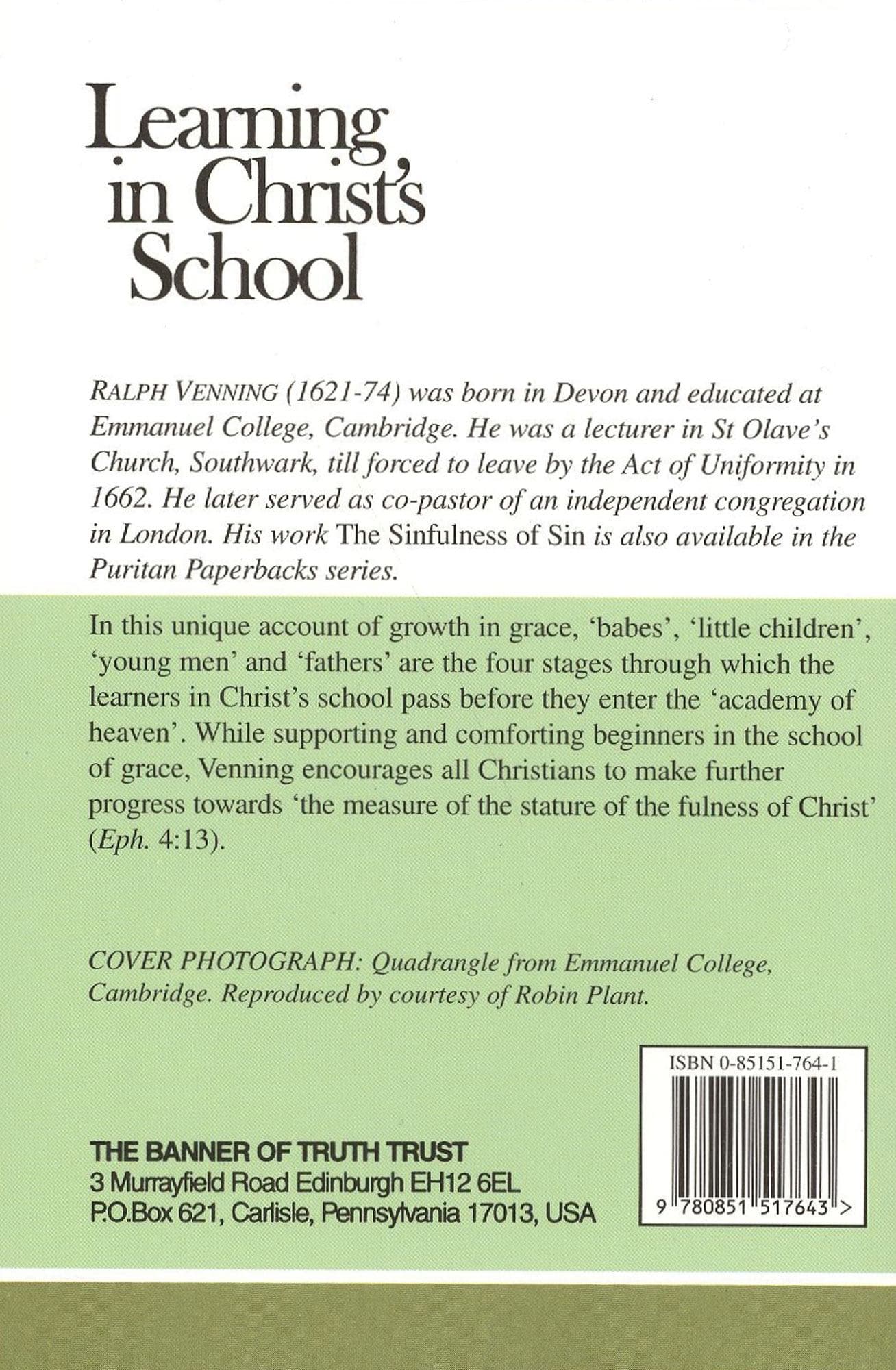 In Learning in Christ’s School, this unique account of growth in grace, ‘babes,’ ‘little children,’ ‘young men,’ and ‘fathers’ are the stages through which the learners in Christ’s school pass on their way to the ‘academy of heaven.’ While supporting and comforting beginners in the school of grace, Venning encourages all Christians to make further progress towards ‘the measure of the stature of the fulness of Christ’ (Ephesians 4:13).