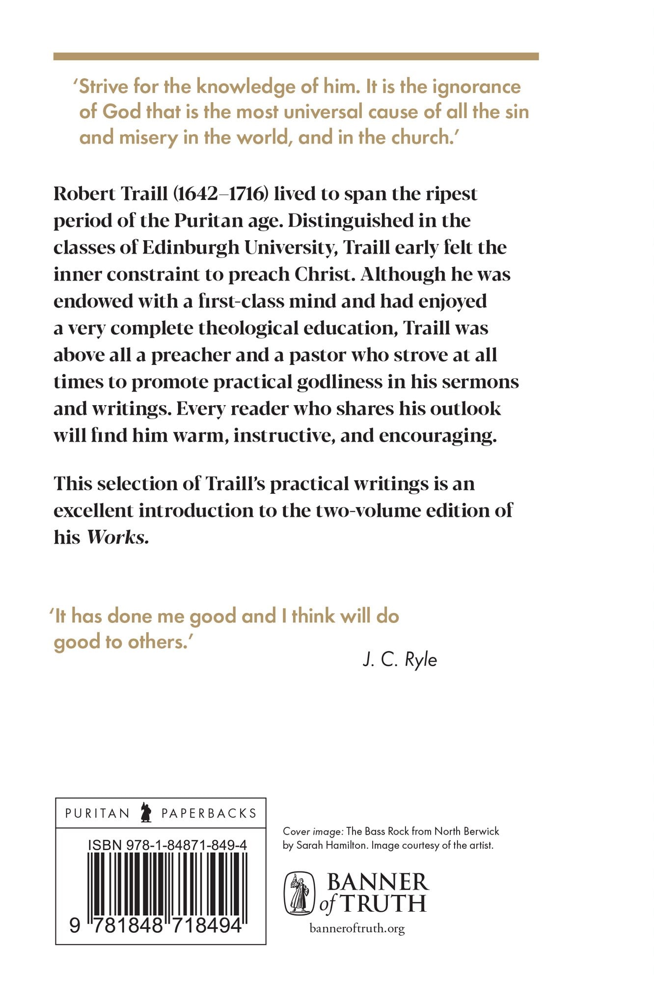 Robert Traill (1642–1716) lived to span the ripest period of the Puritan age. Distinguished in the classes of Edinburgh University, Traill early felt the inner constraint to preach Christ. Although he was endowed with a first-class mind and had enjoyed a very complete theological education, Traill was above all a preacher and a pastor who strove at all times to promote practical godliness in his sermons and writings. Every reader who shares his outlook will find him warm, instructive, and encouraging.