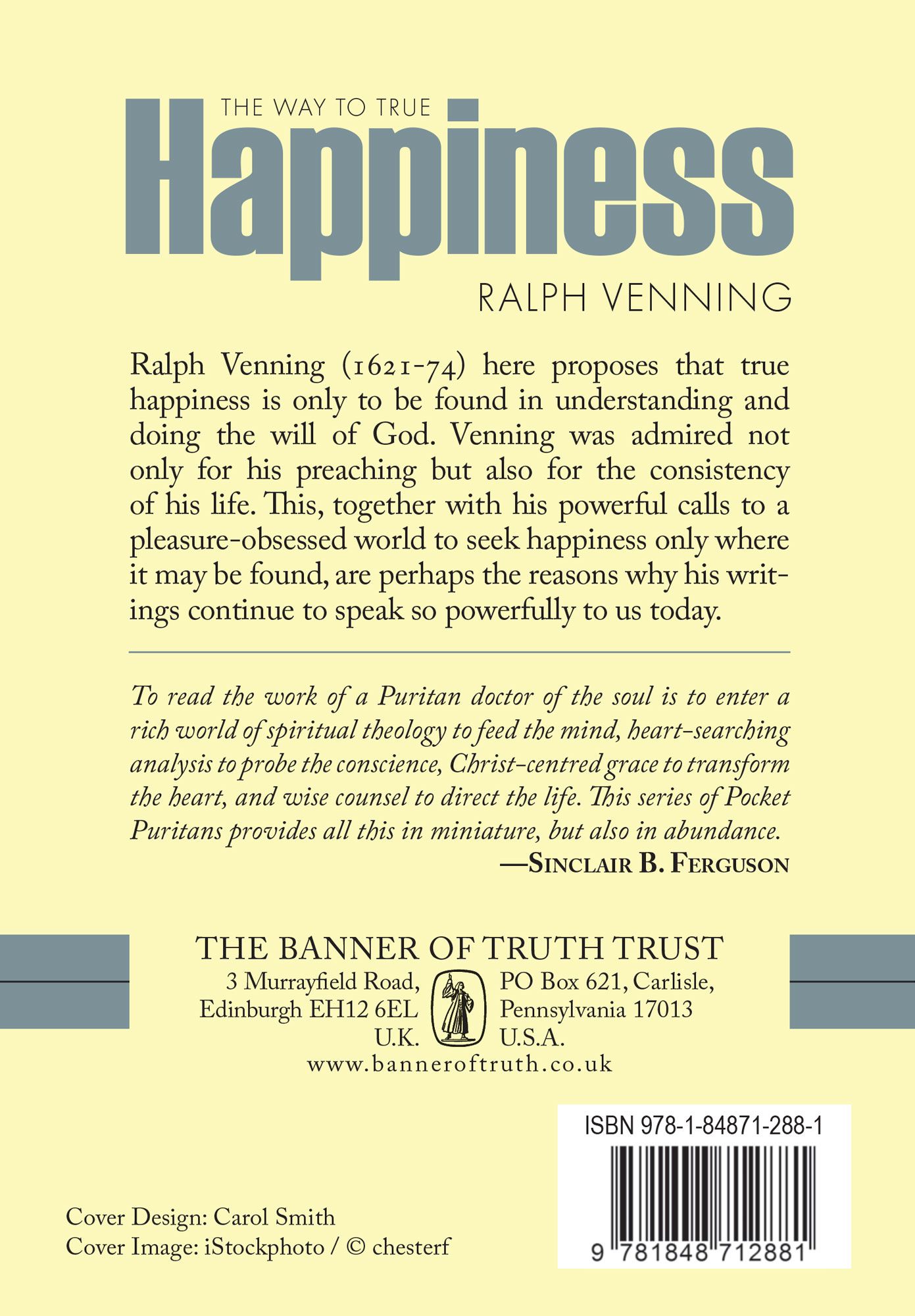 Ralph Venning (1621-74) here proposes that the way to true happiness is only to be found in understanding and doing the will of God. Venning was admired not only for his preaching but also for the consistency of his life. This, together with his powerful calls to a pleasure obsessed world to seek happiness only where it may be found, are perhaps the reasons why his writings continue to speak so powerfully to us today.