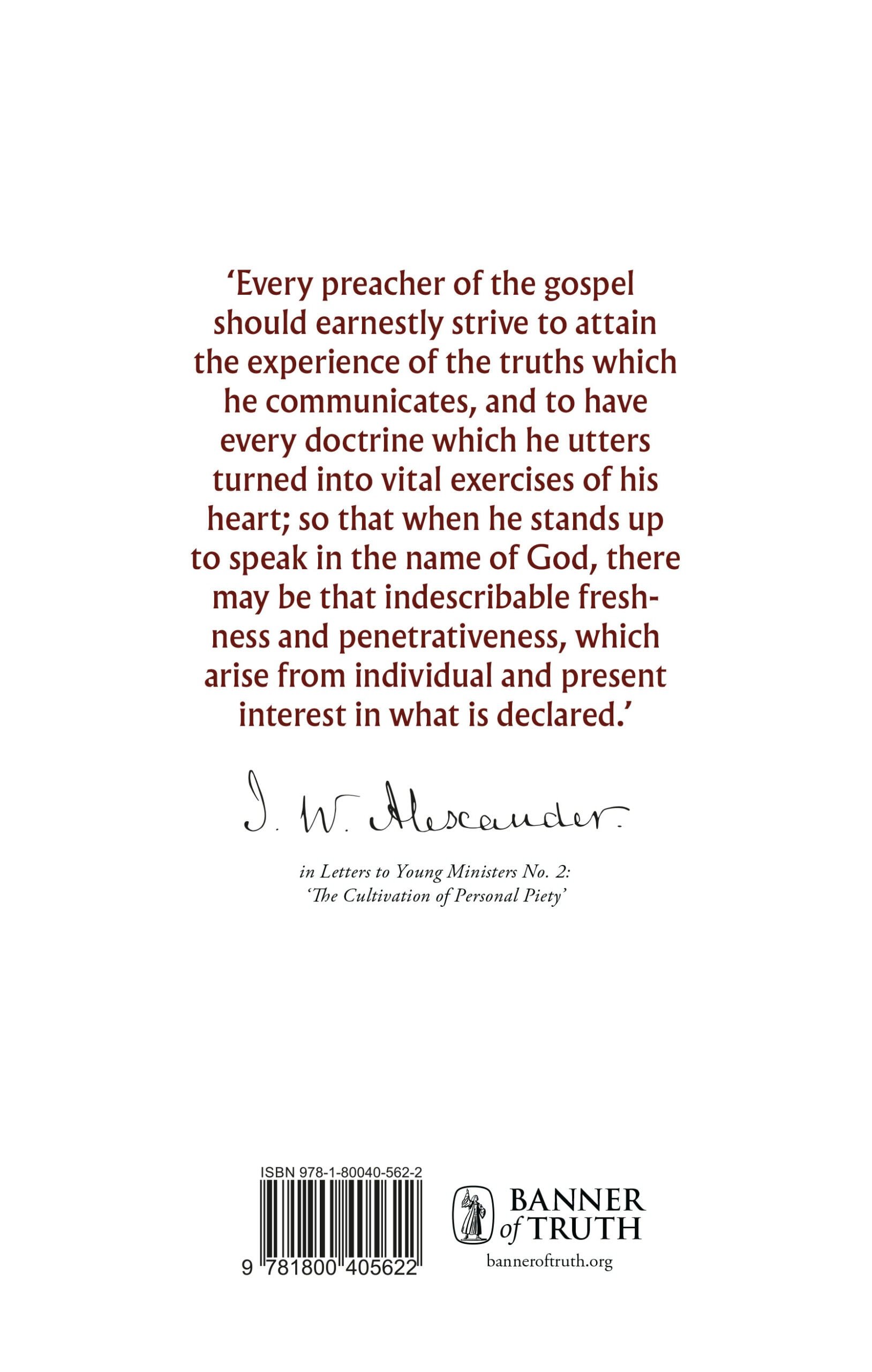 In an area of Christian literature already well endowed, Alexander’s work makes a particular contribution in a number of ways. Firstly, it stimulates thought as well as informs, and thus meets an important need in the preacher’s life. Secondly, it contains a variety of material, and is therefore helpful to the novice and the experienced preacher alike. Thirdly, it instructs the mind and heart to see the preaching of the gospel as the most important and heroic task in the world, and one which demands the consecration of the whole man to God. All who have a concern and responsibility for the preaching of the word of God should find something to help and encourage them in these pages.