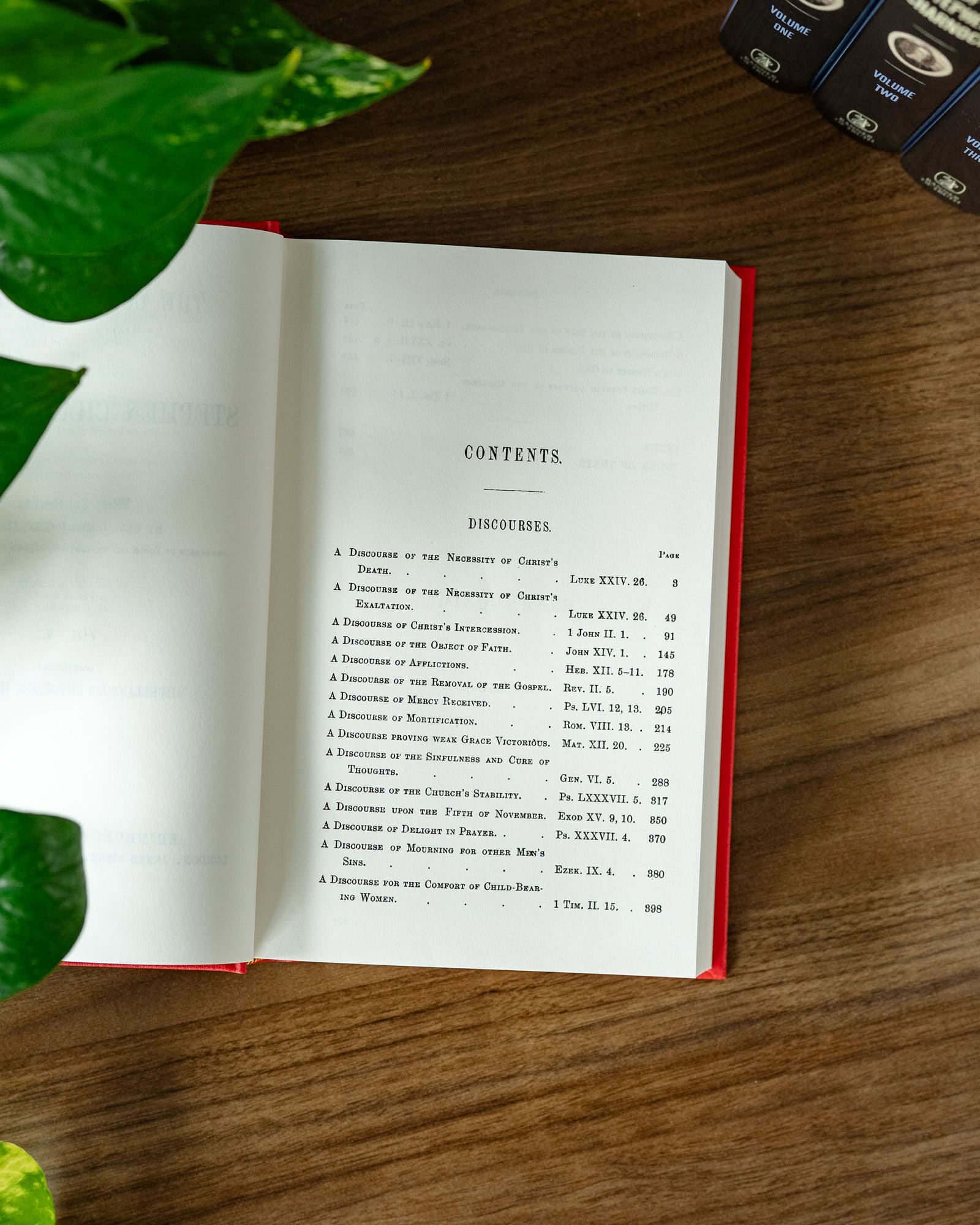 VOLUME FIVE contains a further nineteen discourses. By way of contrast with the earlier volumes – most of which are based on texts from the New Testament – five of the discourses here draw on texts from the Old Testament Scriptures. Many of the topics addressed are of perennial interest to all Christians: the necessity of Christ’s death, and the necessity of his exaltation; Christ’s intercession; God in Christ as the object of faith; afflictions; mortification; the stability of the church; delight in prayer; the sins of the regenerate; man’s enmity to God; and the pardon of sin. The set closes with a useful Index of subjects and persons mentioned, and an Index of Texts.