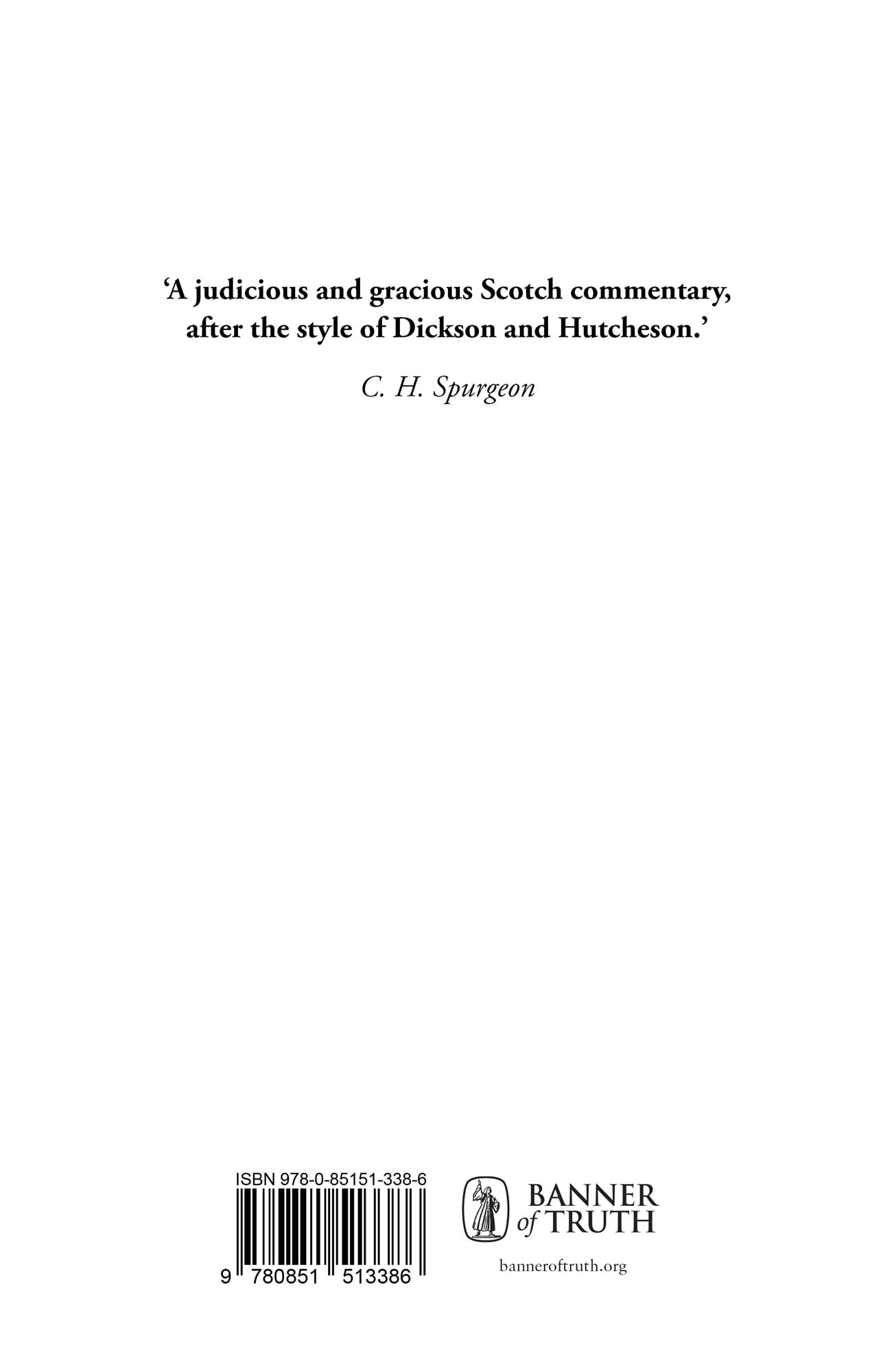 ‘A judicious and gracious Scotch commentary, after the style of Dickson and Hutcheson.’ — C.H. SPURGEON