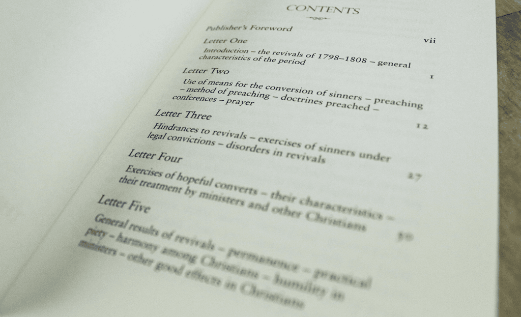 Porter outlines the characteristics of the revivals he had witnessed, the means used for the conversion of sinners, hindrances to revivals, the exercises of those hopefully converted, and the longer-term effects of the revivals on the churches. He also deals helpfully with new theories that were appearing on the subject of divine influence in the conversion of sinners.