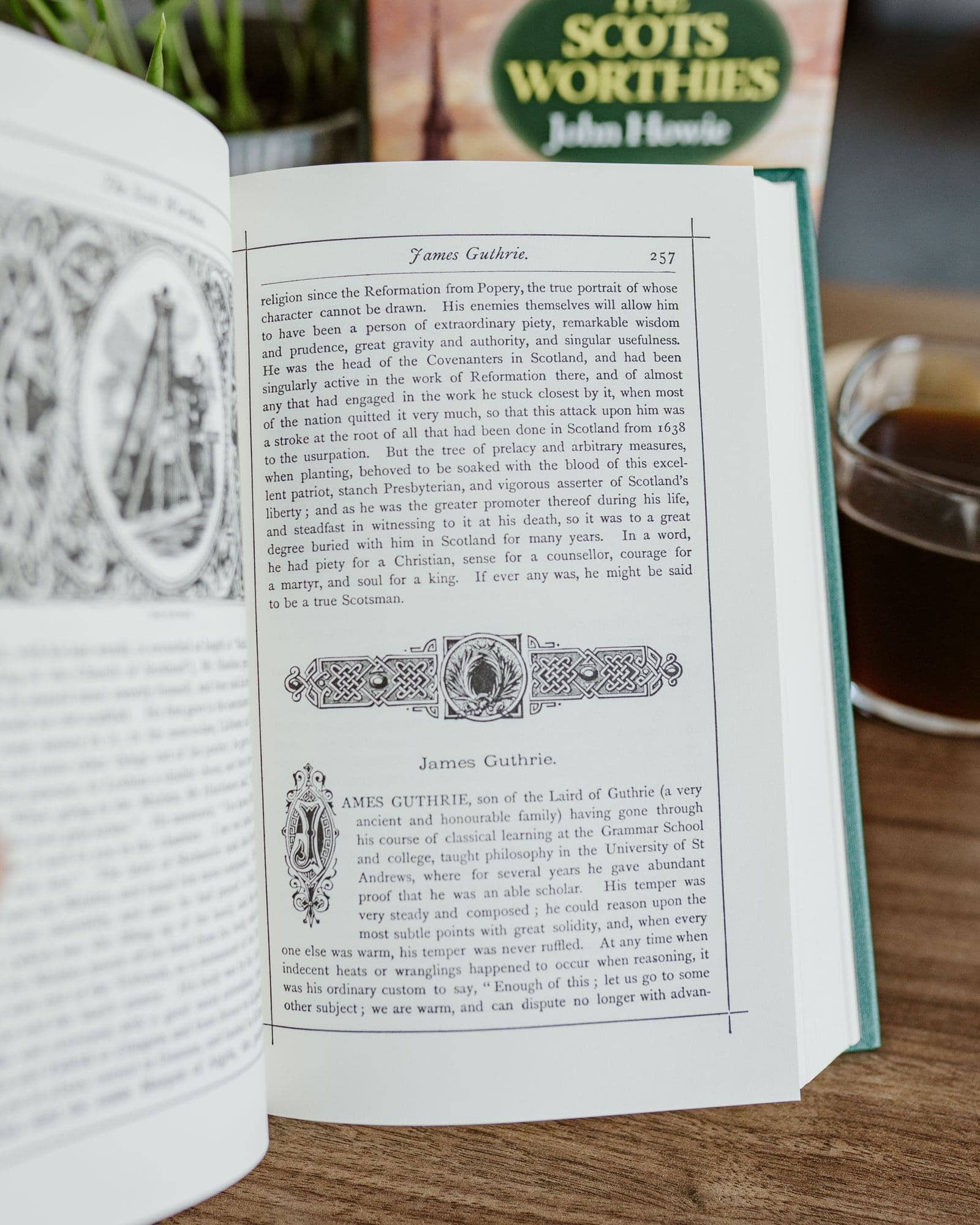 Within the covers of a single volume, John Howie’s The Scots Worthies offers stirring mini-biographies of the great roll-call of the Christian heroes of Scotland in the sixteenth and seventeenth centuries. It is a unique work, including all the figures described by John Dickson while himself a prisoner for Christ on the Bass Rock: ‘Innocent Hamilton, godly and patient Wishart, apostolic Knox, eloquent Rollock, worthy Davidson, courageous Melville, prophetic Welch, majestic Bruce, great Henderson, renowned Gillespie, learned Binning, pious Gray, laborious Durham, heavenly-minded Rutherford, the faithful Guthries, diligent Blair, heart-melting Livingstone, religious Welwood, orthodox and practical Brown, zealous and steadfast Cameron, honest-hearted Cargill, sympathizing M’Ward, persevering Blackader, the evangelical Traills, constant and pious Renwick.’
