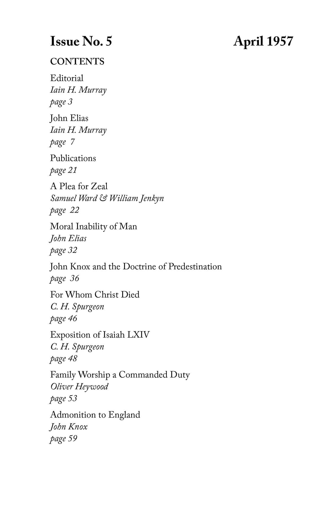 | John Knox and the Doctrine of Predestination — Murray, Iain H | 25-31 |