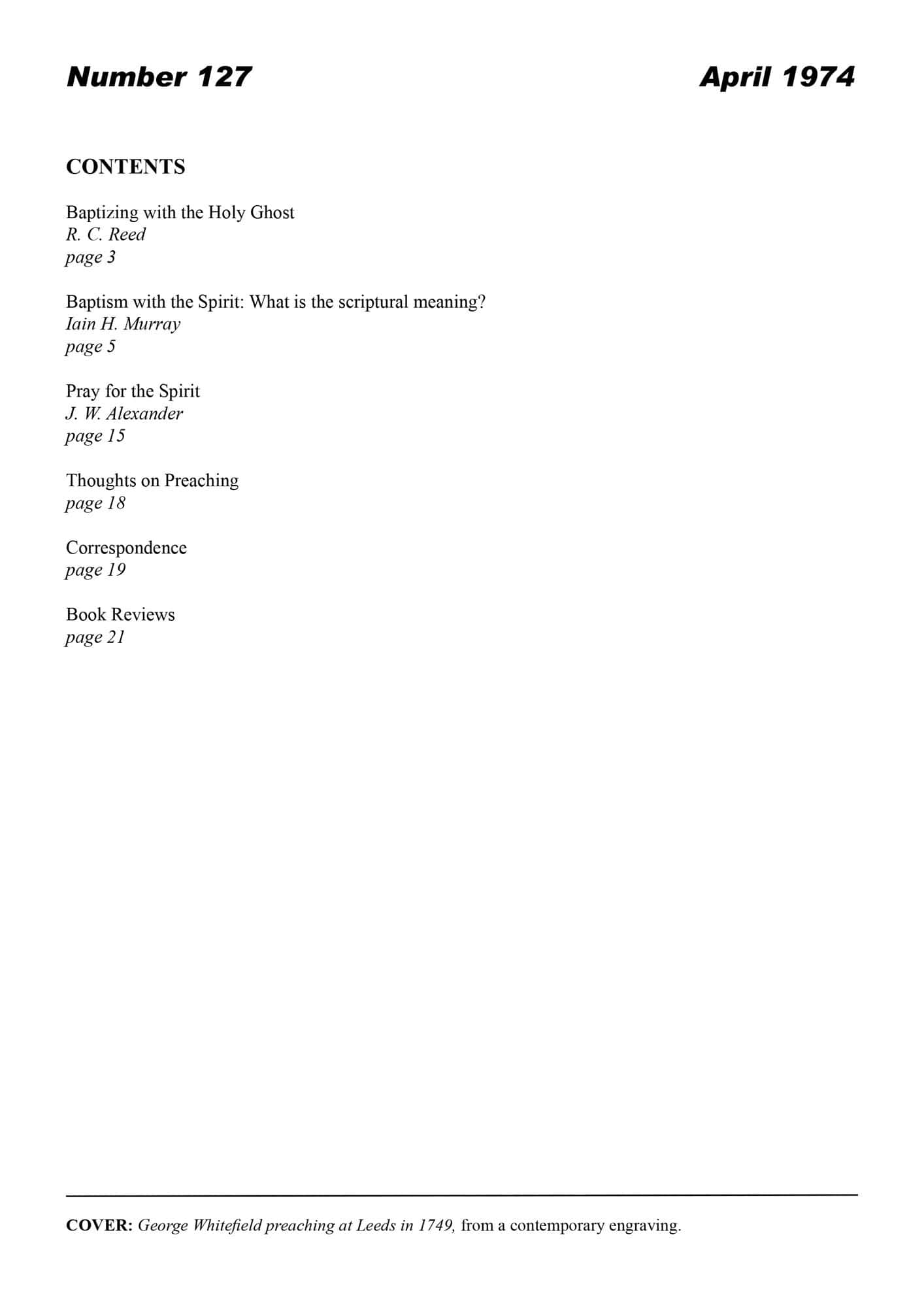 | Baptism with the Spirit: what is the Scriptural meaning? — Murray, Iain H | 5-22 |
