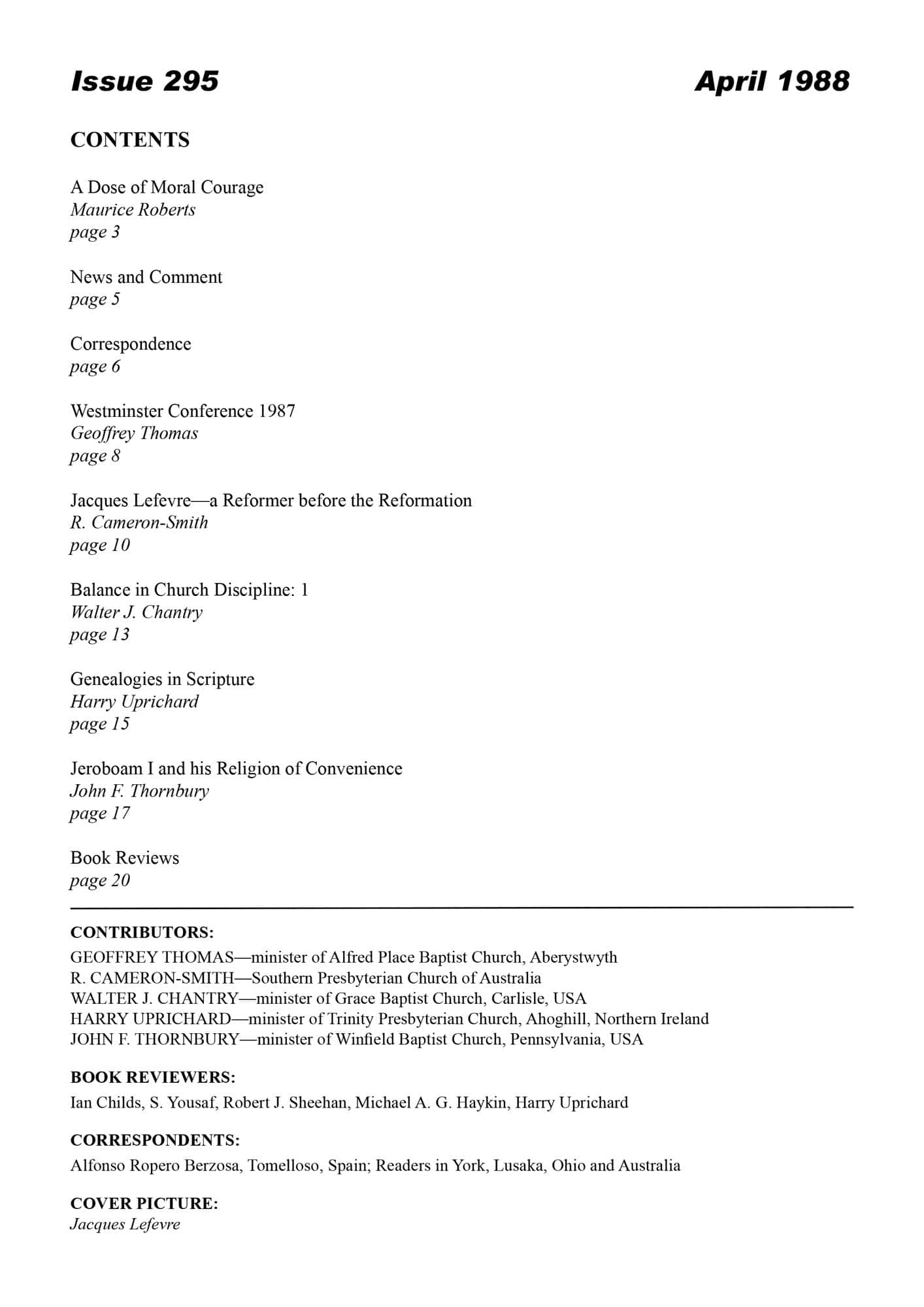 | Jacques Lefevre: a Reformer before the Reformation — Cameron-Smith, Ray | 10-14 |