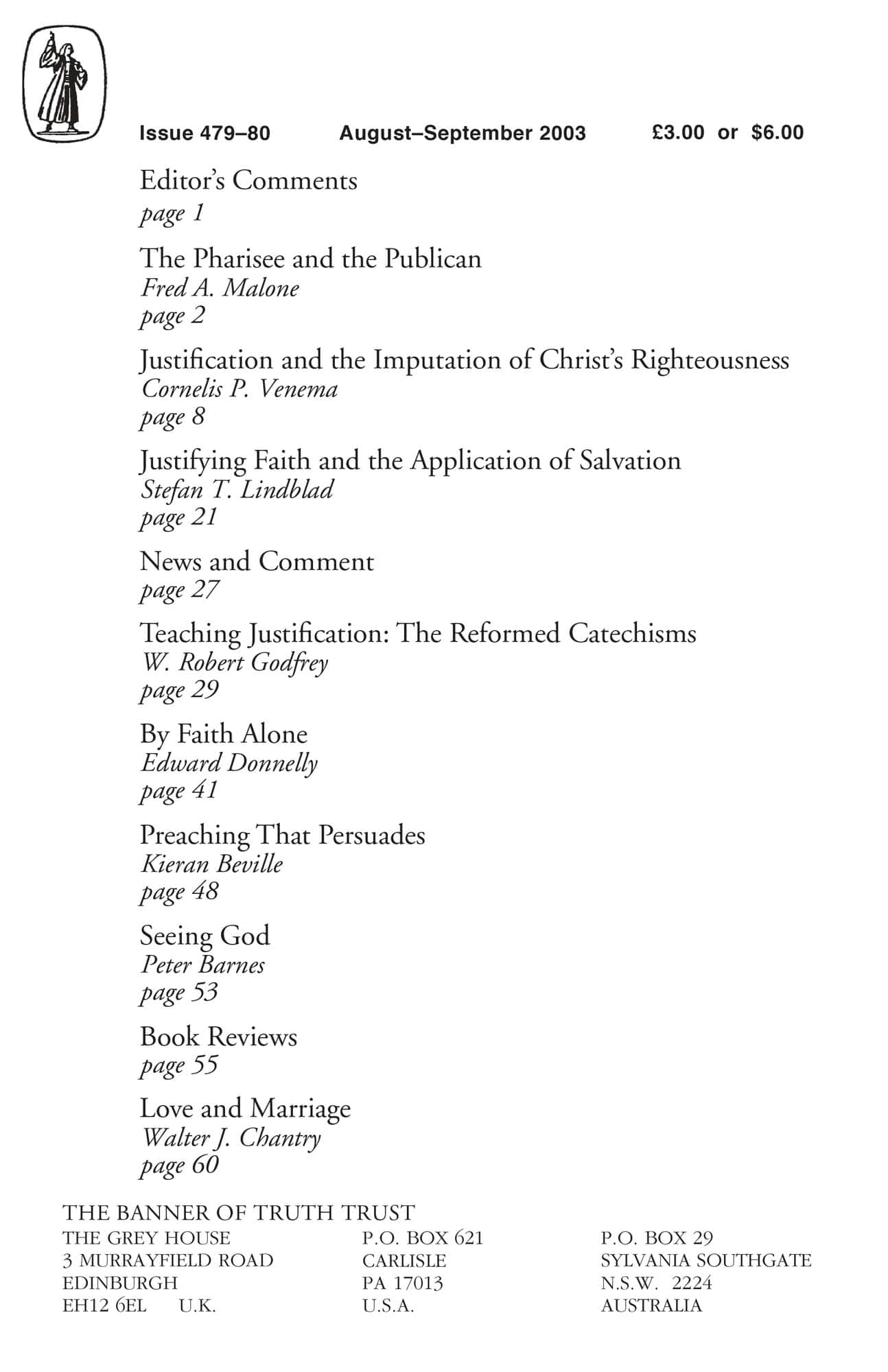 | Pharisee and the Publican: Jesus’ Teaching on Justification by Faith Alone — Malone, Fred A | 2-7 |